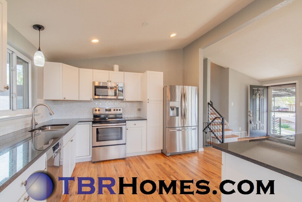 Virtual tour: Discover a rare level of flexibility at this meticulously updated home designed for modern living. The main residence features an open, light-filled floor plan with three spacious bedrooms and two stylish bathrooms. Below, a separated private studio suite offers a fourth bedroom, a third bathroom, and its own full kitchen. This unique setup is the ultimate solution for a premium work-from-home environment, a long-term guest space, or a multi-generational living arrangement. Indoor-outdoor living is the heartbeat of this home, anchored by a massive, covered patio that serves as a second living room for most of the year. The fully fenced backyard isn’t just an entertainer’s dream; it features a private gate providing direct access to the expansive grass fields of Peck Elementary. It is essentially a multi-acre extension of your own backyard, perfect for active afternoons or quiet sunset strolls. The home is as functional as it is beautiful, boasting contemporary finishes and a garage equipped with a 240v outlet for high-speed EV charging. Whether you're hosting on the patio or charging up for the week ahead, the property is designed to simplify your lifestyle. Perfectly situated in a quiet, established Arvada neighborhood, you are just minutes from the vibrant dining and boutique shopping of Olde Town. With easy access to local trails and central commuter routes, you’re perfectly positioned between the energy of Denver and the foothills of Boulder. It’s the ideal blend of suburban tranquility and urban convenience. Pets are permitted only with prior written approval from the Landlord. A $300 refundable pet deposit is required. The lease is for the entire premises, including the lower-level suite. The lower suite is intended for the use of the named Tenants and their immediate family only. Please take a moment to review our rental requirements, pet policies, and answers to other frequently asked questions here