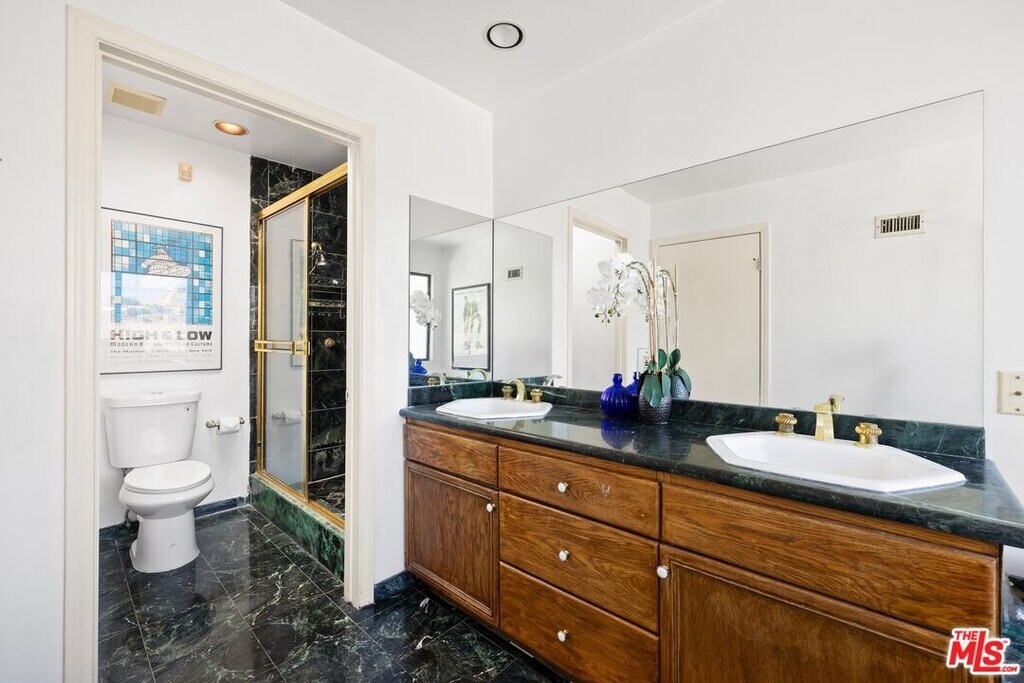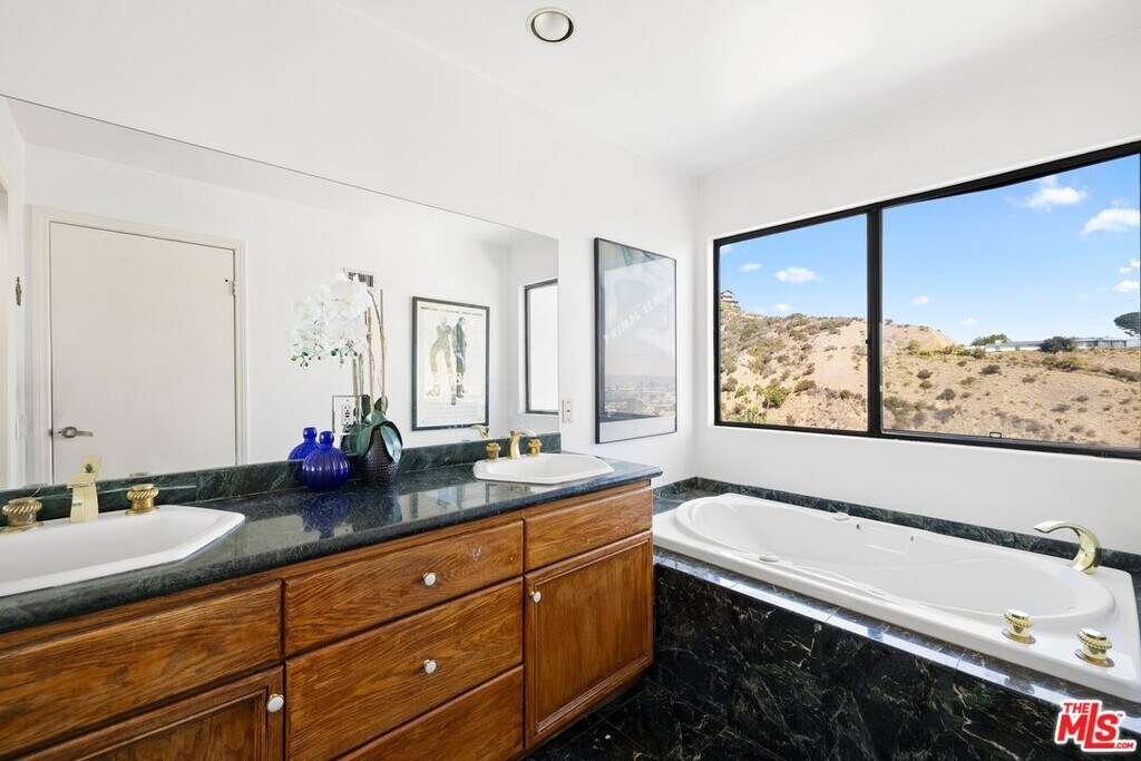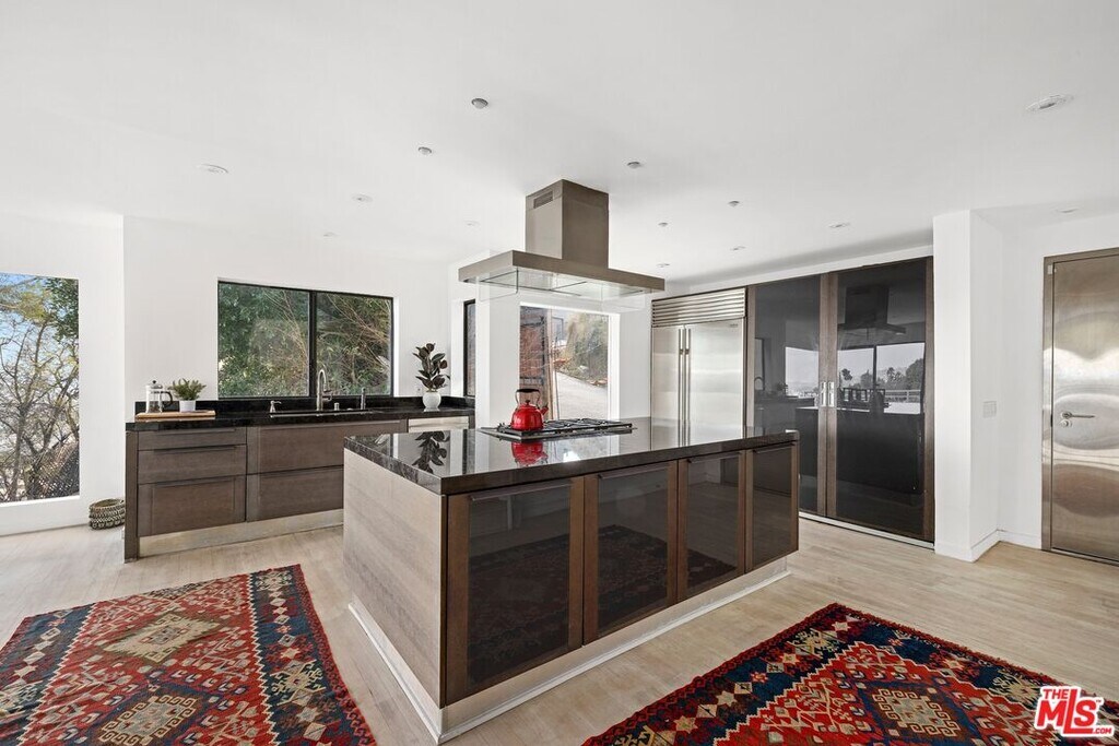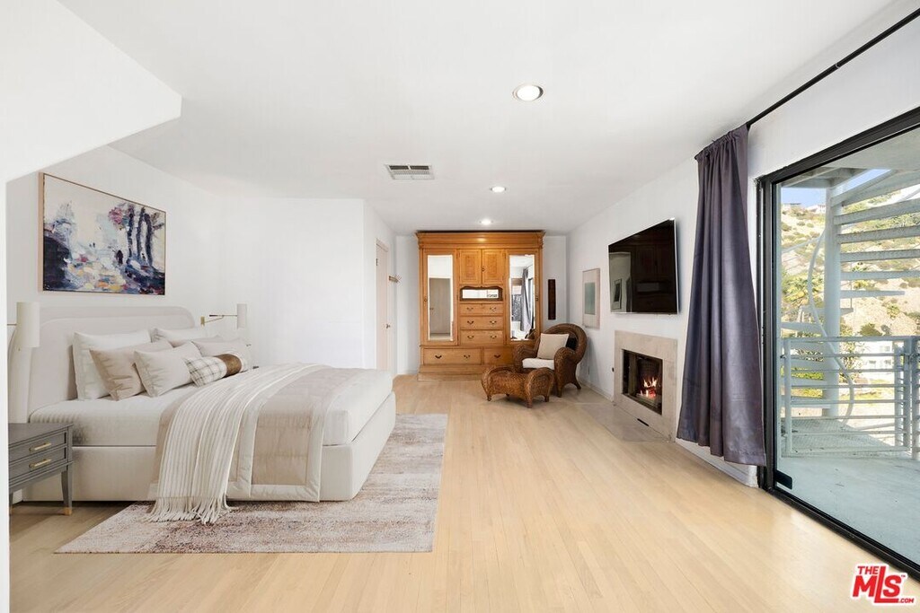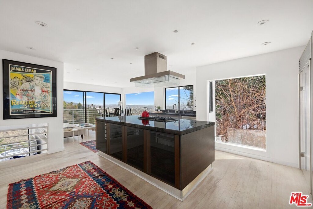 Located on coveted Hillside Avenue in the Hollywood Hills, this 3-bedroom, 3.5-bath multi-level architectural home offers sweeping jetliner views and a refined blend of contemporary design and modern comfort. Spanning 2,547 square feet, the residence captures panoramic vistas from the canyon to the Los Angeles skyline through expansive southeast-facing glass walls that flood the interiors with natural light. The open-concept layout features a gourmet kitchen with custom cabinetry, marble countertops, a center island, and premium appliances including a Wolf range, Sub-Zero refrigerator, and Viking stove. The dining area opens to a spacious balcony ideal for enjoying unobstructed city views. The living room includes a fireplace, wet bar, and additional balcony. The upper level hosts a luxurious primary suite with a spa-like bath, jetted tub, walk-in closet, fireplace, and private balcony, along with a versatile bedroom or office with en-suite bath. A rooftop deck crowns the home, perfect for entertaining or relaxing. The lower level offers a second primary suite with en-suite bath, fireplace, private balcony, and nearby laundry room. Additional features include a tankless water heater, dual-pane windows, central air conditioning, a custom Italian spiral staircase, an attached one-car garage, and ample street parking. Minutes from hiking trails, West Hollywood dining, and the iconic Chateau Marmont, this fully furnished residence delivers exceptional architecture, location, and views. MLS# 26650967