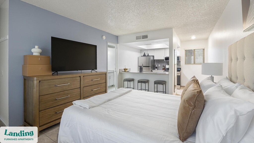 Landing offers flexible lease terms from weeks to months. Please always visit our website or contact us for the latest pricing & availability. Stay longer, save more: 6-Month Minimum base rent: starts at $1320/mo 12-Month Minimum base rent: starts at $1120/mo Landing offers flexible leases across a network of over 35,000 fully-furnished apartments throughout 375+ cities so you can rent on your terms, practically anywhere, and avoid the hassle of paying deposits or application fees. Visit to learn about all the benefits of a Landing membership, see our competitive up-to-date pricing, explore available apartments, take virtual tours, and make reservations online without jumping through traditional rental hoops. Landing's apartments at Celeste Glendale are designed for comfortable, easy living, with the ability to stay as long as you like. Experience living with Landing Every apartment is outfitted with all the modern essentials including: custom-designed furnishings, a fully-equipped kitchen with deluxe stainless steel appliances, a gourmet coffee maker, premium linens, Smart TVs, and incredibly fast, reliable internet for working from home. When you live with Landing, you'll enjoy a hassle-free experience with the added benefit of 24/7 access to our dedicated member experience team. Some of the nitty-gritty: a background check and proof of income are required; we're completely smoke-free; bundled utility packages and pricing vary based on length of stay; pet-friendly options available; listed price reflects a 12-month minimum stay.