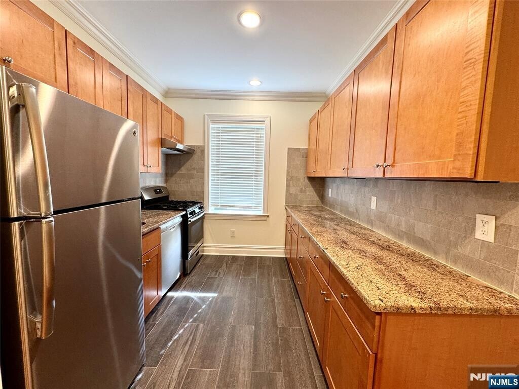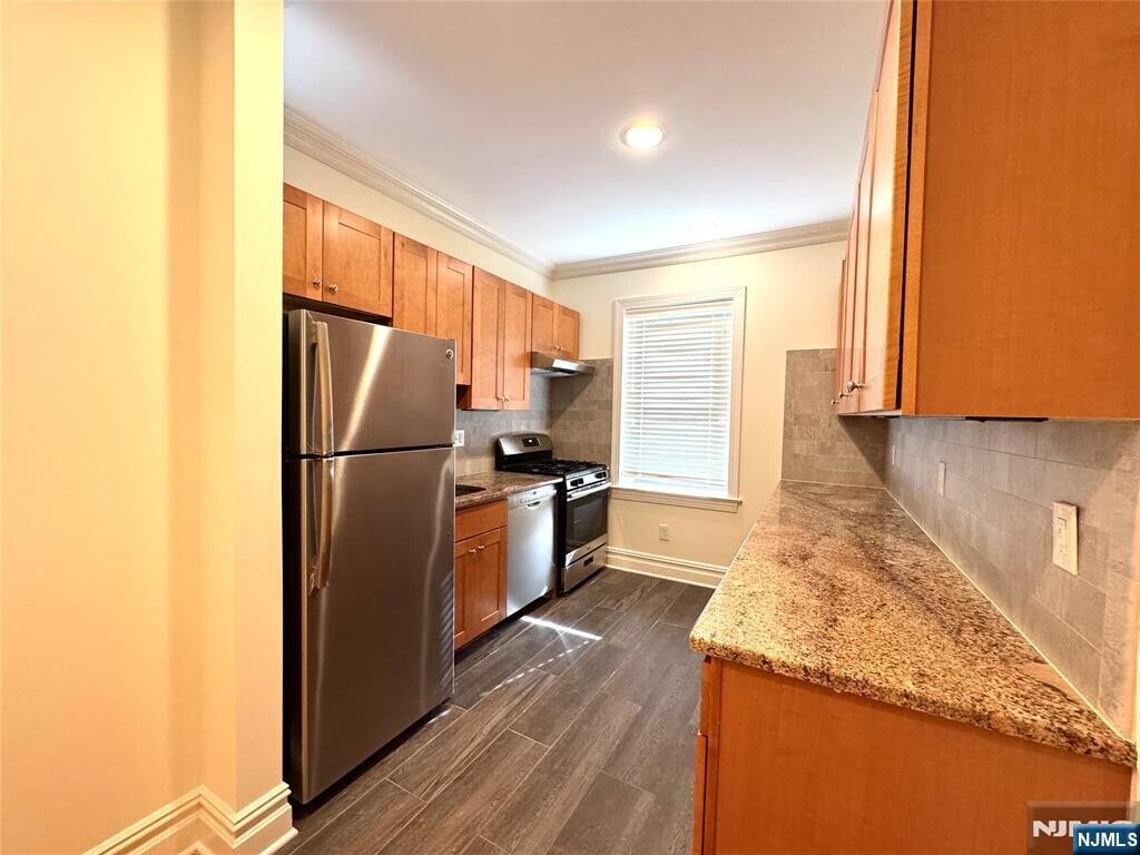 WOW! YOU WILL FALL IN LOVE WITH THIS LARGE & UNIQUE INDUSTRIAL STYLE 1 BDROOM APT. BEAUTIFULLY RENOVATED WITH ALL THE MODERN CONVENIENCES, IT IS COMBINED WITH THE ELEGANCE OF A HISTORICAL ART DECO BUILDING. THE APARTMENT BOASTS UPSCALE FEATURES & FINISHES SUCH AS CENTRAL HVAC; OPEN DUCTWORK; SLEEK KITCHEN WITH S/S APPLIANCES (INCL. BOSCH DISHWASHER); GRANITE COUNTERS; SOLID WOOD MAPLE SOFT CLOSE CABINETS. GORGEOUS WIDE PLANK HARDWOOD FLOORS; CROWN & BASE MOLDING; HIGH CEILINGS; RECESSED LIGHTING; CEILING FANS; WINDOW TREATMENTS; TILED BATH WITH PEDESTAL SINK. LAUNDRY IN RENOVATED BASEMENT. STREET PARKING ONLY BUT EASY TO FIND SPACES. BORDERING ON PALISADES PARK, IT IS CLOSE TO ALL HIGHWAYS, SHOPPING & BUS TO NYC. IT'S THE TALK OF THE AREA--GREAT SPACE AT A GREAT RENT! IT'S NOT YOUR COOKIE CUTTER APARTMENT!! MAPLE GARDENS IS A SMOKE-FREE BUILDING! NO PETS PLEASE!!!