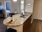 Welcome to The Snowbird Suite, a beautifully furnished apartment located on the first floor of The Ravines At Westar in the Polaris area. Feel at home in this peaceful gated community with easy free parking for two cars, a king master suite with an en-suite bath, a second bedroom with a queen bed, and a comfortable Arhaus sofa. Enjoy the convenience of a walk-in shower, a private patio, and fast WiFi, along with a 50" smart TV with DirecTV. Step out from your private entrance and be greeted by the tranquility of this gated community, tucked just off Polaris Parkway in one of Columbus' most desirable neighborhoods. The apartment features a spacious floor plan with quality furniture, two bedrooms, and two full bathrooms. The kitchen is equipped with kitchenware and cleaning supplies, and there's a washer and dryer for your convenience. Guests also have access to the gym and pool. Pets under 75 lbs are welcome to join you during your stay, with a maximum of two pets allowed. No commonly restricted breeds, please. Enjoy complimentary amenities at the clubhouse, including a fully equipped fitness center, a Starbucks Coffee barista machine, a business center, and an outdoor saltwater pool. Located in the heart of the Polaris area, this apartment offers a quiet and safe environment. Enjoy the convenience of walking to nearby restaurants like 101 Beer Kitchen and Buffalo Wild Wings, and attractions such as the Polaris Fashion Place mall, IKEA, and Top Golf. With easy access to I-71, you're well-connected to all areas of Columbus. This home is located in a 100% smoke-free community, so no smoking is allowed anywhere, including the balcony, breezeways, and parking lots. Easy self-check-in is available via a secure door keypad. A laptop computer is not included in the home office set-up. Flexible stays are available with a minimum of 30 nights, and you can extend your stay with two weeks' notice. If plans change, you can shorten your stay with two weeks' notice and receive a partial refund for unused nights beyond the two-week mark. [SI]
