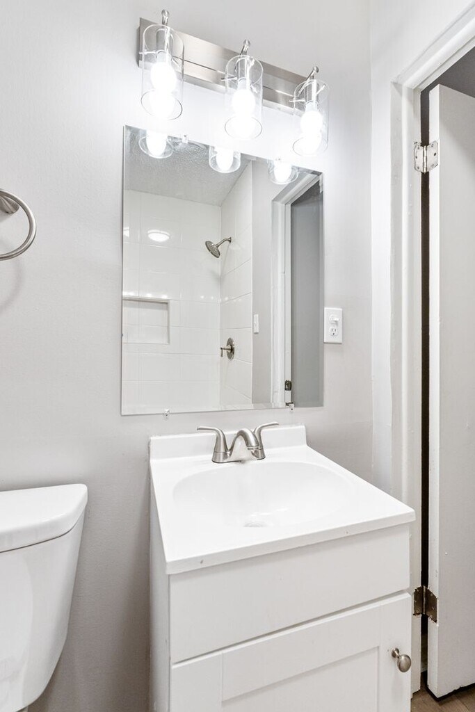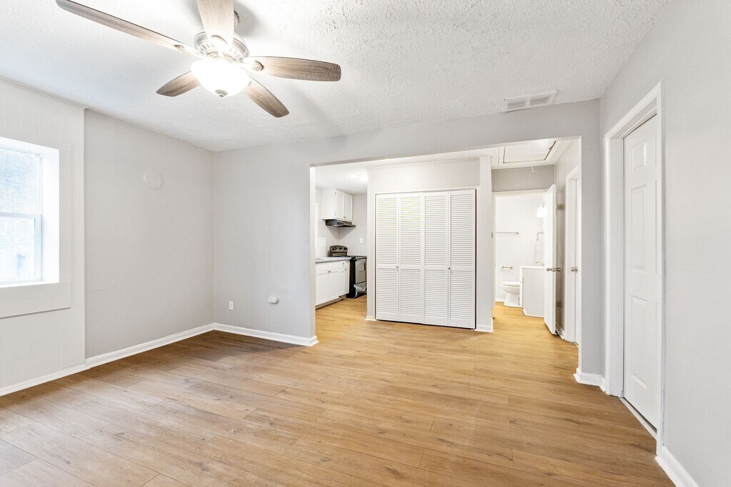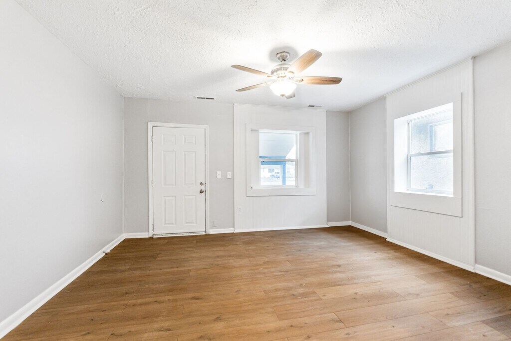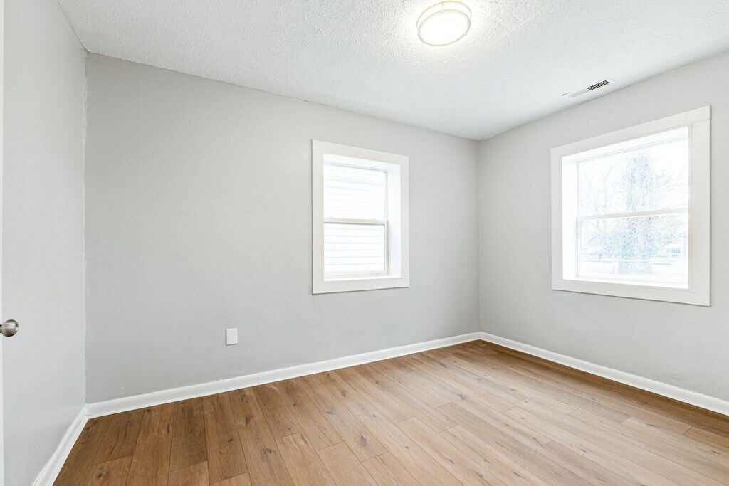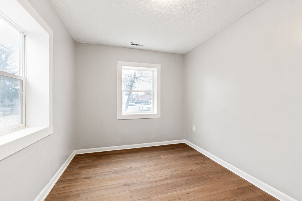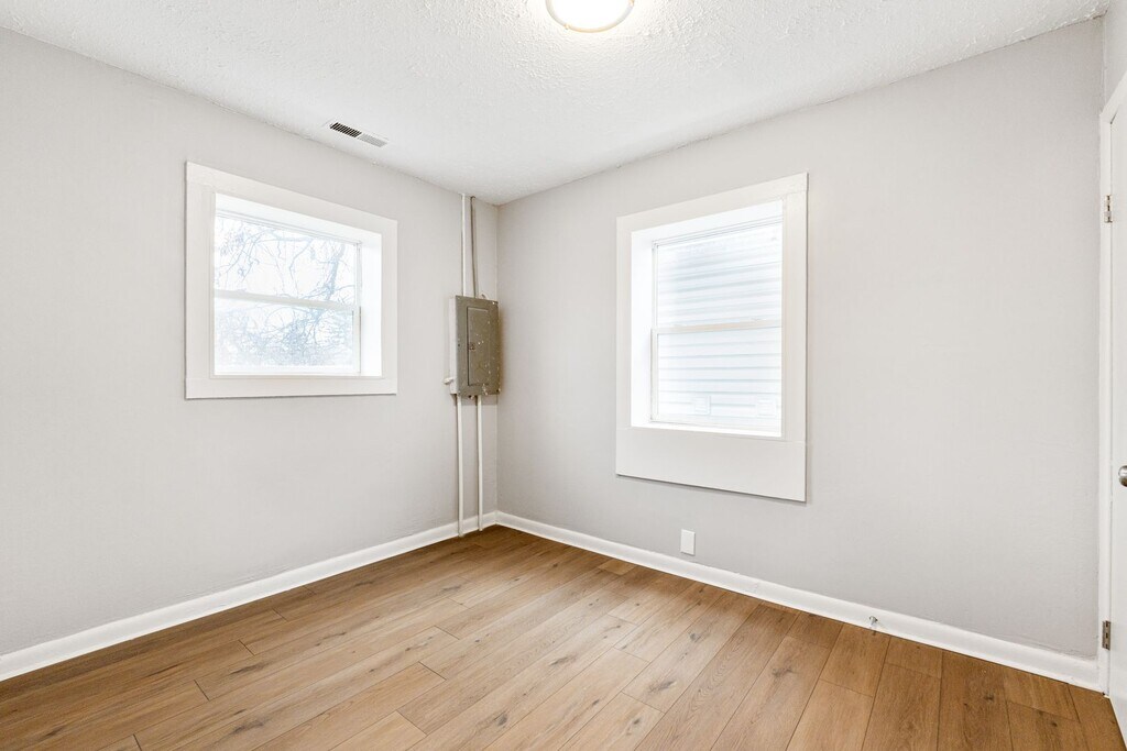 This beautifully renovated single-family home offers 2 spacious bedrooms and 1 updated bathroom. Step inside to find a bright and airy layout with fresh gray walls, brand-new vinyl flooring, and new windows that fill the home with natural light. The modern kitchen is a standout, featuring sleek granite countertops, abundant cabinetry, a double-well sink with an updated pull-down faucet, and brand-new appliances—perfect for everyday cooking and entertaining. The bathroom has been completely refreshed with a tile-surround shower, new vanity, stylish lighting, and modern fixtures. A closet off the living room has washer & dryer hookups. Outside, you’ll enjoy a large fenced-in backyard with a full privacy fence, ideal for relaxing or entertaining. The front yard is equally impressive, offering a spacious lawn and a large parking pad for convenience. This home blends comfort, style, and functionality—ready for you to move in and enjoy!