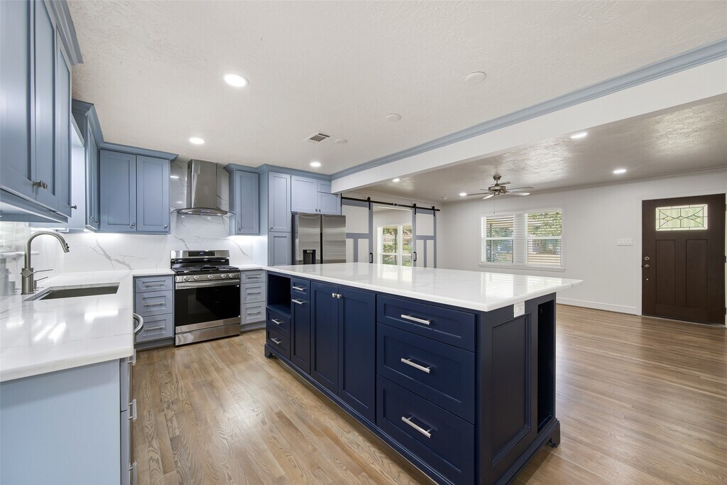 This beautifully renovated 2-bedroom,2-bath home includes a versatile flex room ideal for a home office,guest room,or playroom. Hardwood floors extend throughout,accented by crown molding and 2-inch faux wood blinds. The chef-inspired kitchen boasts a family-style island,under-cabinet lighting,abundant counter space and storage,and top-of-the-line stainless appliances. Additional features include a mud area,generous storage,refrigerator,washer and dryer included,fenced backyard,and covered parking. Zoned to Garden Oaks Elementary,this home perfectly combines style,functionality,and a prime location. MLS# 96566588