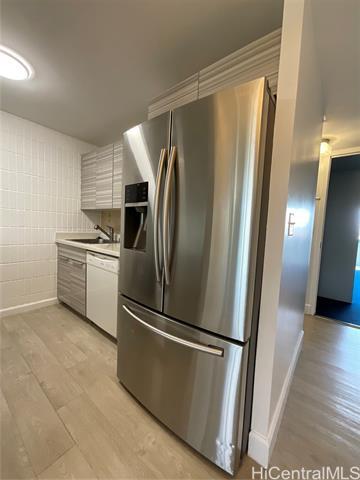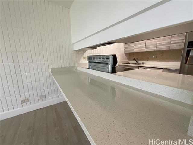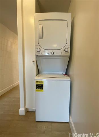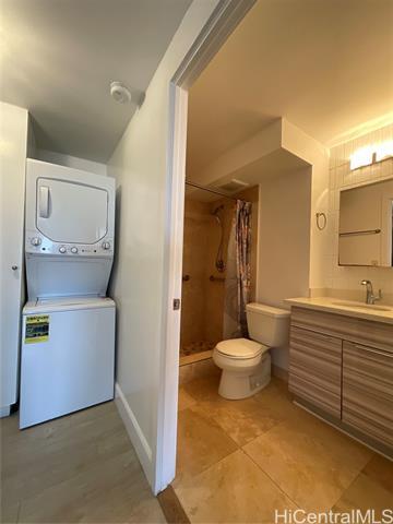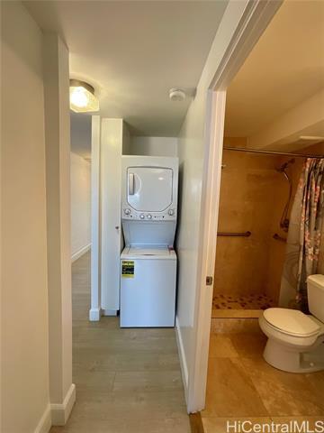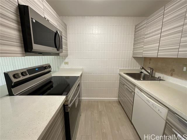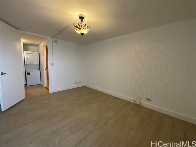 Crystal Park Condominium is a quiet complex located in Moilili. Unit is in Excellent Condition with Large Granite eating bar. Built in cabinets in the living room. The Kitchen comes with Dishwasher New Stove and New Microwave. Unit has Removed popcorn ceiling throughout. Paradigm water resistant flooring in living room and entire bedroom floor. Tile Floor in Bathroom and Tile Walk- In Shower with granite countertop. Washer/Dryer stack unit. This apartment is a large one-bedroom well-kept unit with the view facing a park. The parking is covered, and the building is secured. Great location to all activities around the area restaurant, University of Hawaii, Park, shopping mall. Vacant
