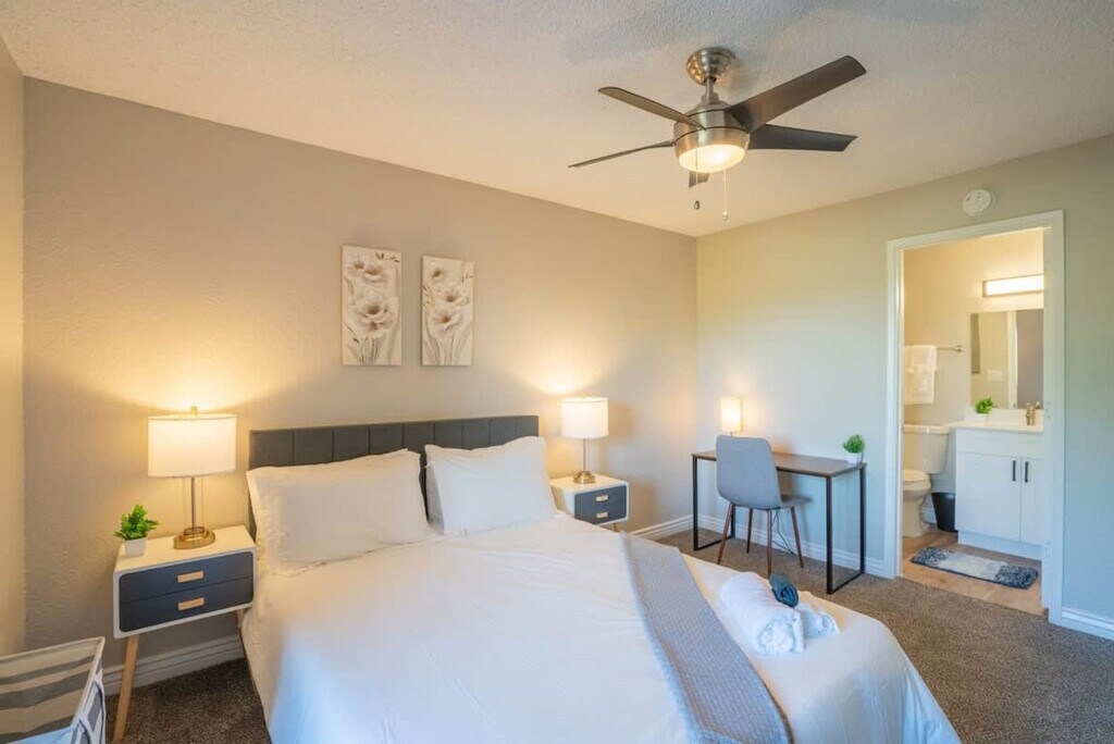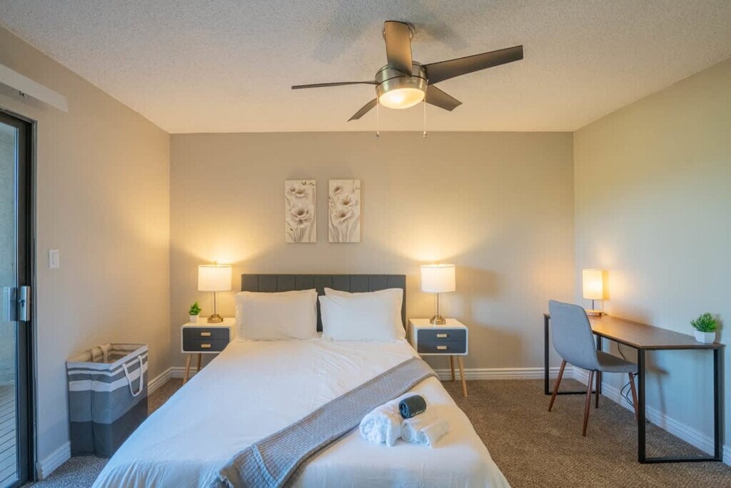 Discover serenity in this chic retreat in the heart of Scottsdale. Immerse yourself in the vibrant energy, surrounded by award-winning restaurants, eclectic shops, and historic landmarks. With convenient access to attractions, this stylish apartment serves as your gateway to seamless exploration. Your urban oasis awaits. There is one flight of stairs to walk up for the unit. Relax in this 2-bedroom unit, designed to provide a socially and environmentally conscious living environment with top-notch customer service and unparalleled amenities. The living space features an innovative open-concept design that blends the living and dining areas with the kitchen, creating a modern and sleek living experience. The living room is ideal for relaxing and enjoying the company of friends and family while watching a good movie or a show. The unit features a fully equipped kitchen in which you can easily prepare your favorite, delicious meals. Its space and modern amenities are much more than you would expect from a 2-bedroom apartment. There is parking on premises with instructions given at check-in. Pets are allowed depending on size or if they are service animals. An additional cleaning fee is required per pet: $25 per night for 1-7 nights, $200 for 8-29 nights, and $300 for 30+ nights. There is a 2 pet maximum and only cats and dogs are allowed. If you are found to have brought pets without prior notification, there will be a $500 fee. Early check-in and check-out may be accommodated at a fee of $25 per hour, with prior authorization. For delayed checkout, there is a $500 late check-out fee. Lost or unreturned keys incur an $80 fee for key replacements and $150 for key fob replacements. Located in the southeastern part of Scottsdale, Arizona, this apartment is nestled in a peaceful residential neighborhood, offering a serene retreat away from the hustle and bustle. Nature lovers will appreciate the proximity to El Dorado Park, where you can hike, picnic, and enjoy the beautiful Arizona weather. Shopaholics and foodies will love the convenience of Scottsdale Waterfront, Scottsdale Fashion Square, and Tempe Marketplace, all within a short drive. The neighborhood boasts excellent schools like Pima Elementary School and Coronado High School, making it ideal for families. With quick access to major highways, including Loop 101 and Loop 202, you can easily explore nearby attractions and reach downtown Phoenix. Enjoy cultural activities at the Scottsdale Museum of Contemporary Art and the Scottsdale Center for the Performing Arts. Golf enthusiasts can tee off at nearby golf courses. Explore the McDowell Sonoran Preserve, a vast desert preserve offering hiking and stunning desert vistas. You're perfectly situated between lively Tempe and downtown Scottsdale, ensuring a wide array of entertainment options. The safety and well-being of our guests are of utmost importance to us, and we use a thorough and extensive process of cleaning after each check-out. Quiet hours are between 10pm and 8am every day. If there are noise complaints or any violation of this rule, it may result in cancellation of booking and removal from property without refund. There is a strict no-party policy. If there is a party of any kind, the police will be called and everyone will be removed from the property with no refunds. No unauthorized guests are allowed at the unit, with a $100 fine per guest if discovered. Smoking is prohibited without exception on this property. If any signs of smoking are found in the unit or on the premises, a fine of $500 will be imposed. We do not assume any responsibility for parking violations issued to guests who fail to comply with our parking guidelines as detailed in the check-in guide. Noise monitors are installed in the unit to measure noise levels in decibels. If tampered with, there will be a fee. Security cameras are in the hallways for security. Some stays have auto-locking doors, so keep the keys on you. [SI]