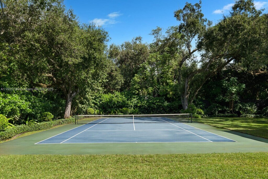 Timeless elegance and Southern sophistication define this 7,481SF fully furnished estate,perfectly situated on 1.16 acres with its own tennis court.Fully renovated in 2021,the residence reveals refined luxury with soaring ceilings,matte porcelain floors and a grand living room that exudes both scale and warmth.The gourmet kitchen featuring a large quartzite island,Miele appliances & custom cabinetry.A 600-bottle wine cellar.An expansive family room provides the perfect space for relaxation.Experience resort-style living amid lush gardens,a spa-like pool and captivating ambiance,complemented by a covered pavilion with a summer kitchen.A dream primary suite complete with a spa-inspired bathroom,custom walk-in closets,mini kitchen & a private gym.A true sanctuary of privacy & sophistication.