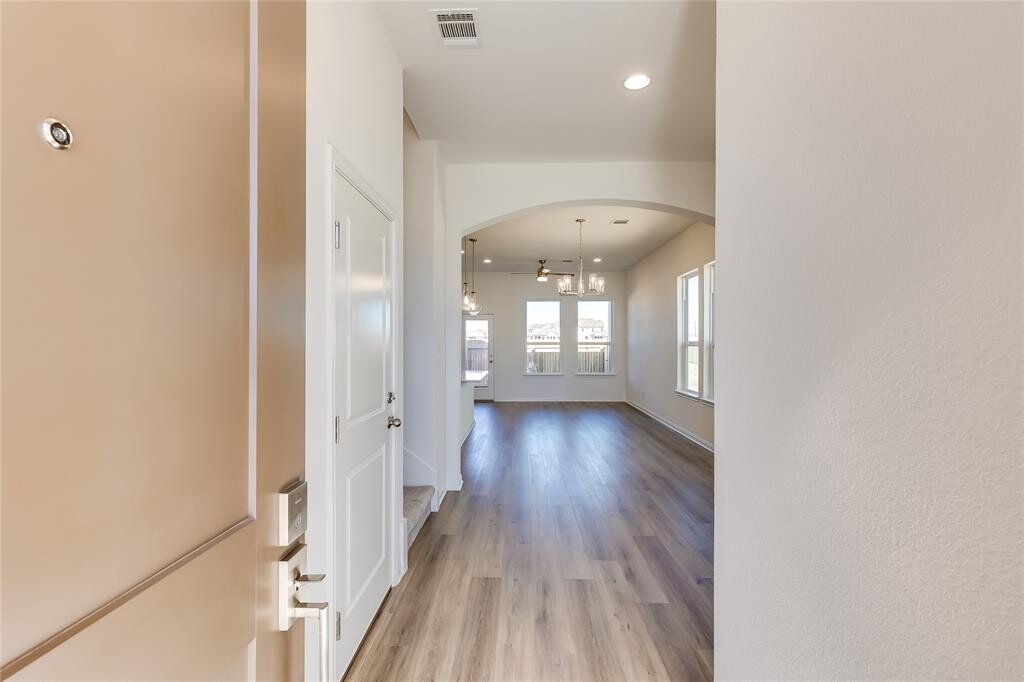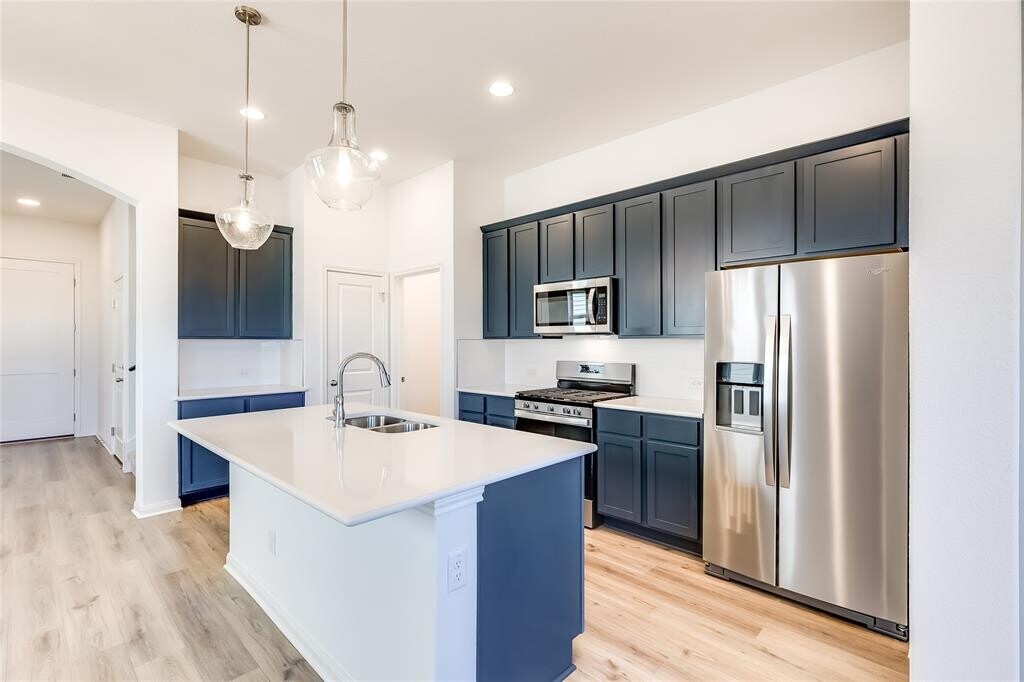 This charming townhome with 3 bedrooms, 2.5 bath + loft features luxury vinyl flooring in entry, living, dining, family, and the primary bedroom. Large, oversized shower with bench, seamless shower glass, and many designer touches throughout the home. The kitchen opens to the living area and features beautiful quartz countertops. Stainless steel Whirpool appliance package includes vented microwave, dishwasher, and a 5 burner gas stove. Upper level overlooks pool and pickleball court. Full 2-car garage with garage door opener. Situated just minutes from Old Settlers Park and downtown Round Rock, this thoughtfully designed gated community is a mix of cottages and townhomes, each with its own private fenced yard. MLS ID 2782879