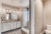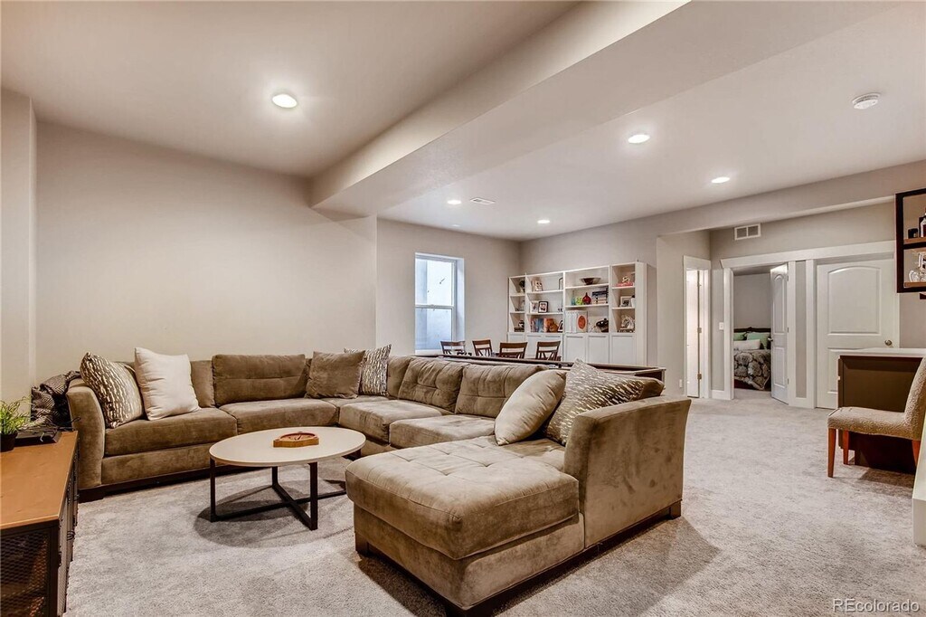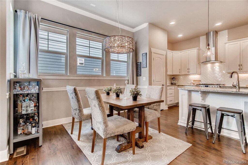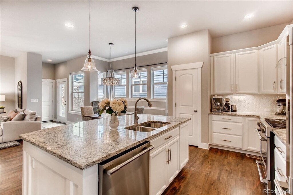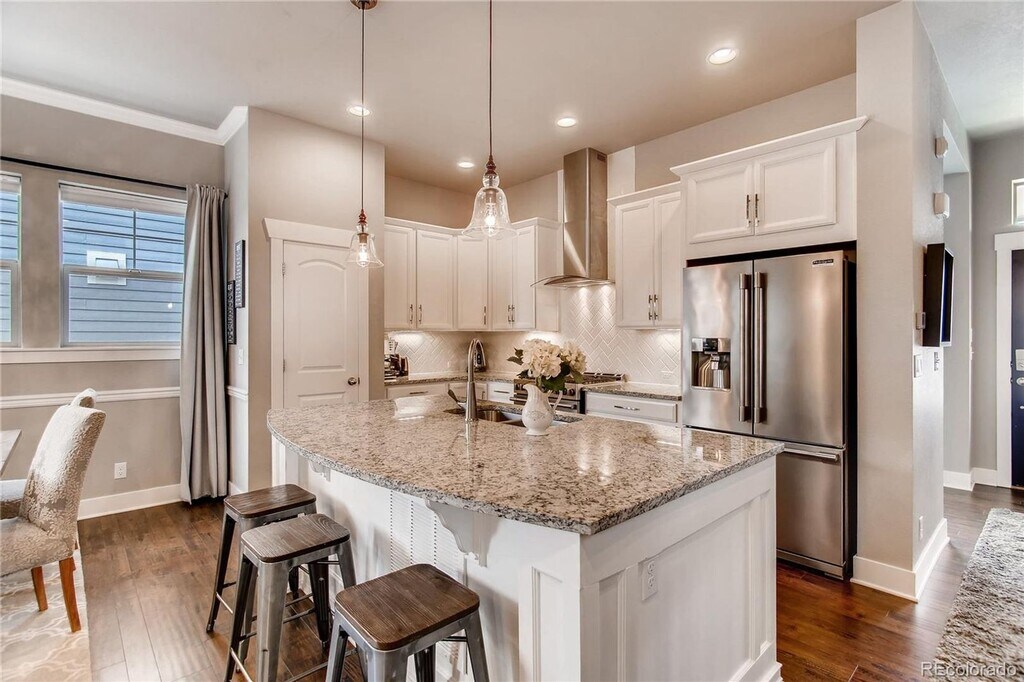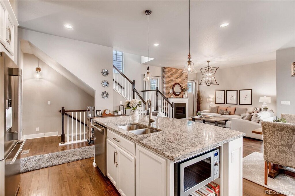 Exquisite two-story residence in the highly desirable Willow Park East enclave of Central Park. This home blends timeless design with modern comfort, featuring a chef-inspired kitchen appointed with white shaker cabinetry, premium stainless steel appliances, and a sleek subway tile backsplash. The open main level showcases a statement brick fireplace, an elegant dining area, and a refined home office accented with classic wainscoting. A stylish powder room completes the main floor. Ascending the staircase, you’ll find three bedrooms, two beautifully appointed baths, and a thoughtfully designed laundry room with custom built-ins. The primary suite serves as a serene retreat, featuring a generous walk-in closet and a spa-like bath with dual vanities and exquisite tile detailing in the shower. The professionally finished basement extends the living space, offering a sophisticated recreation area with a custom wet bar, guest bedroom, full bath, and additional finished storage. Outdoors, a charming front porch overlooks a picturesque pocket park with a playground and open green space. The private side yard is designed for low-maintenance enjoyment, complete with a stamped concrete patio ideal for entertaining or quiet relaxation. Perfectly situated near shopping, dining, entertainment, and public transit. Pets negotiable.