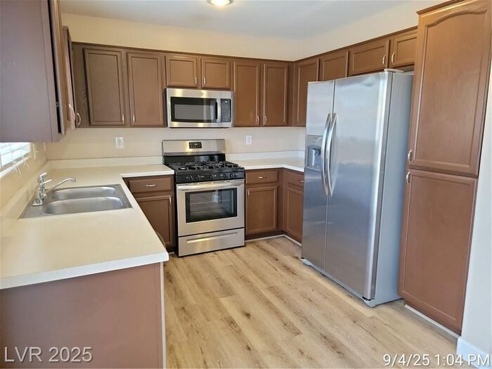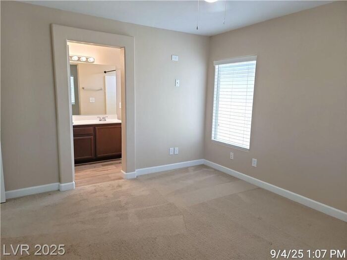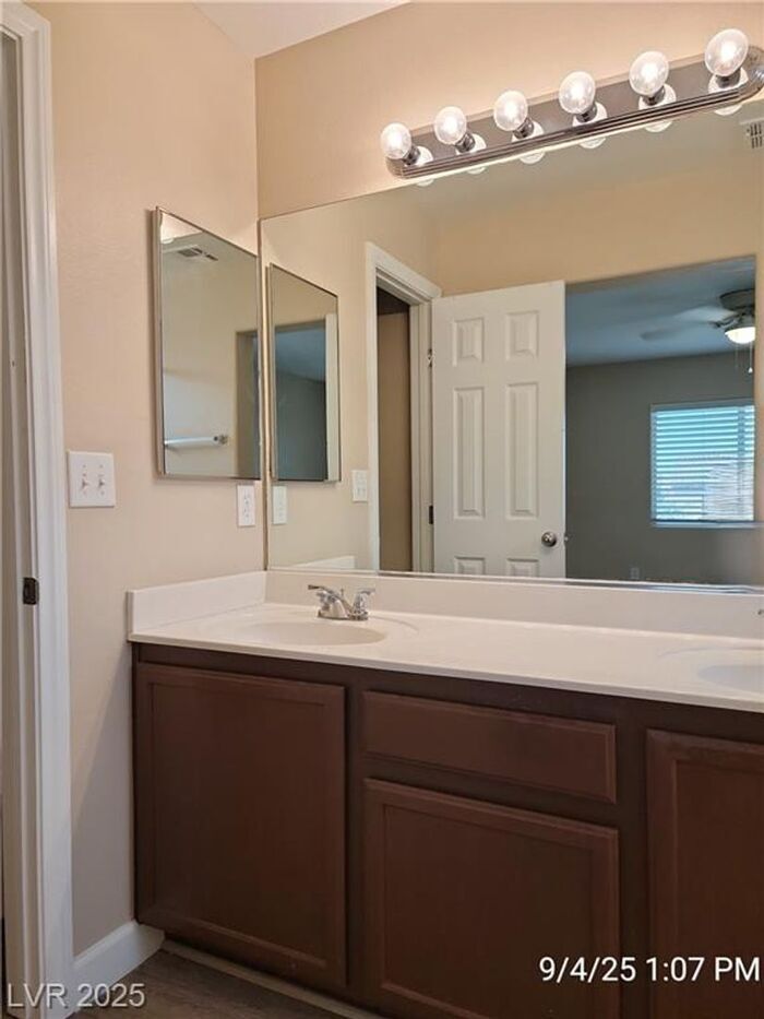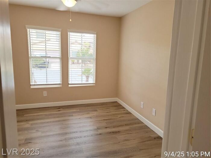 NEW PHOTOS COMING SOON!! JOIN THE WAITLIST HERE (Not Accepting Applications until After Property is Viewed) Just minutes from the Strip and the "M" Casino, this 4-bedroom home with a den offers the perfect blend of space and privacy. The open living area features warm, luxury vinyl plank flooring, and the kitchen is upgraded with granite countertops and stainless-steel appliances. There's also a convenient half bath and den/office (could be 5th bedroom - no closet) downstairs. Upstairs, all the bedrooms and the laundry room are located, including a primary bedroom with a walk-in closet and a tub/shower combo. Ceiling fans throughout keep things comfortable year-round. The backyard is easy to maintain with synthetic grass and a patio perfect for relaxing. Trash to remain in owner's name and residents only pays $22 monthly for services. While the owner may consider a small dog, no cats are allowed. This home offers simple, comfortable living in a fantastic location—close to everything but with plenty of privacy! Contact us to schedule a showing.