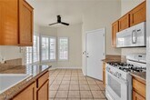 Spacious 1 story home that is conveniently located near the 215 freeway. This home features a great open floor plan and shutters throughout. Spacious living room centered around the fireplace. Kitchen comes with breakfast nook and ample counter space and cabinets. Large primary bedroom has a large closet and even double sink vanity. Enjoy the private backyard for some rest and relaxation. Welcome Home!