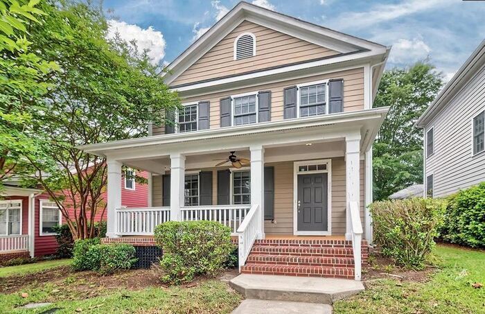 This beautiful home is in the Harborside area of Lake Carolina. The large classic southern front porch has a view of the park across the street. Gleaming hardwood floors carry throughout the downstairs enhancing the open layout. Upstairs, the primary bedroom has a huge walk-in closet, a large bath with a garden tub, separate shower, double vanity, and a separate water closet. Brand new carpets being installed in 2026. There is a built-in desk in the hallway. Two car garage access via alley. Lake Carolina offers multiple walking trails, a Town Center with restaurants and services,and an option to join the pool. Contact us to schedule a showing.