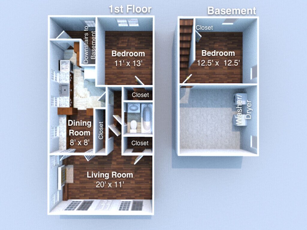 - 2BR, 1BA