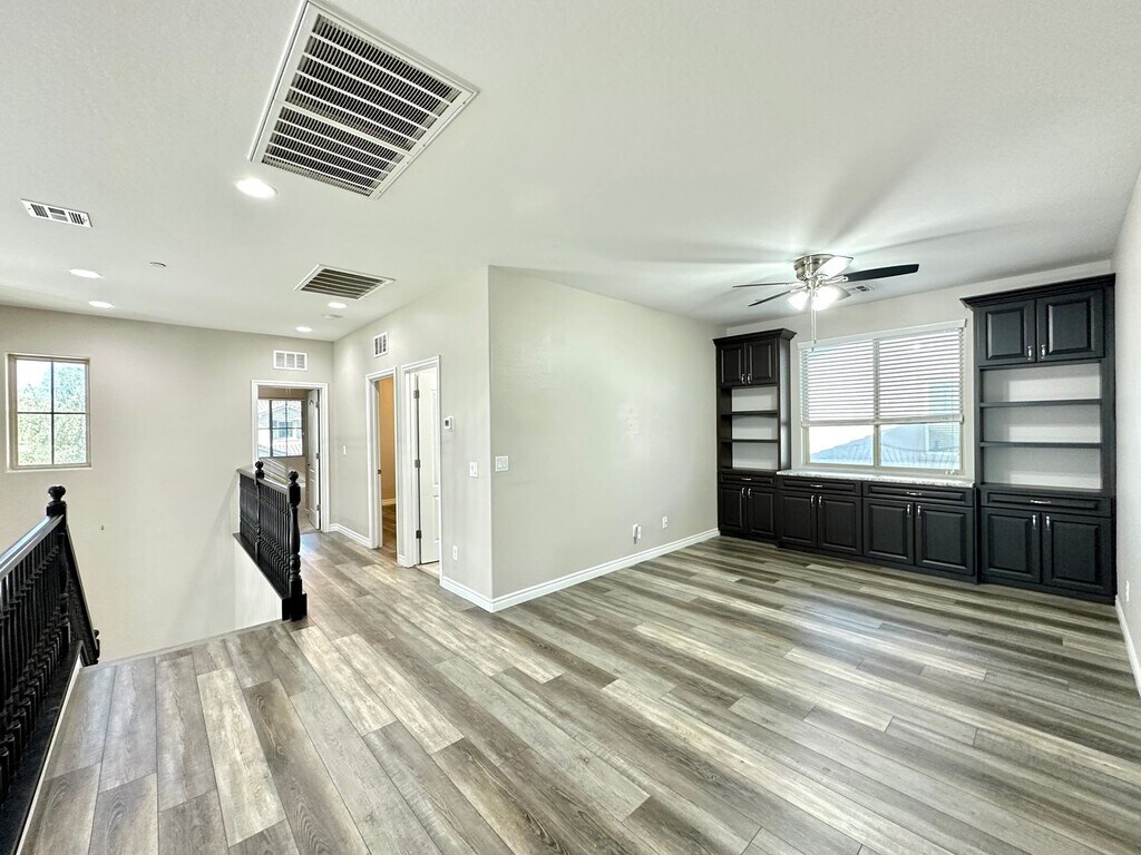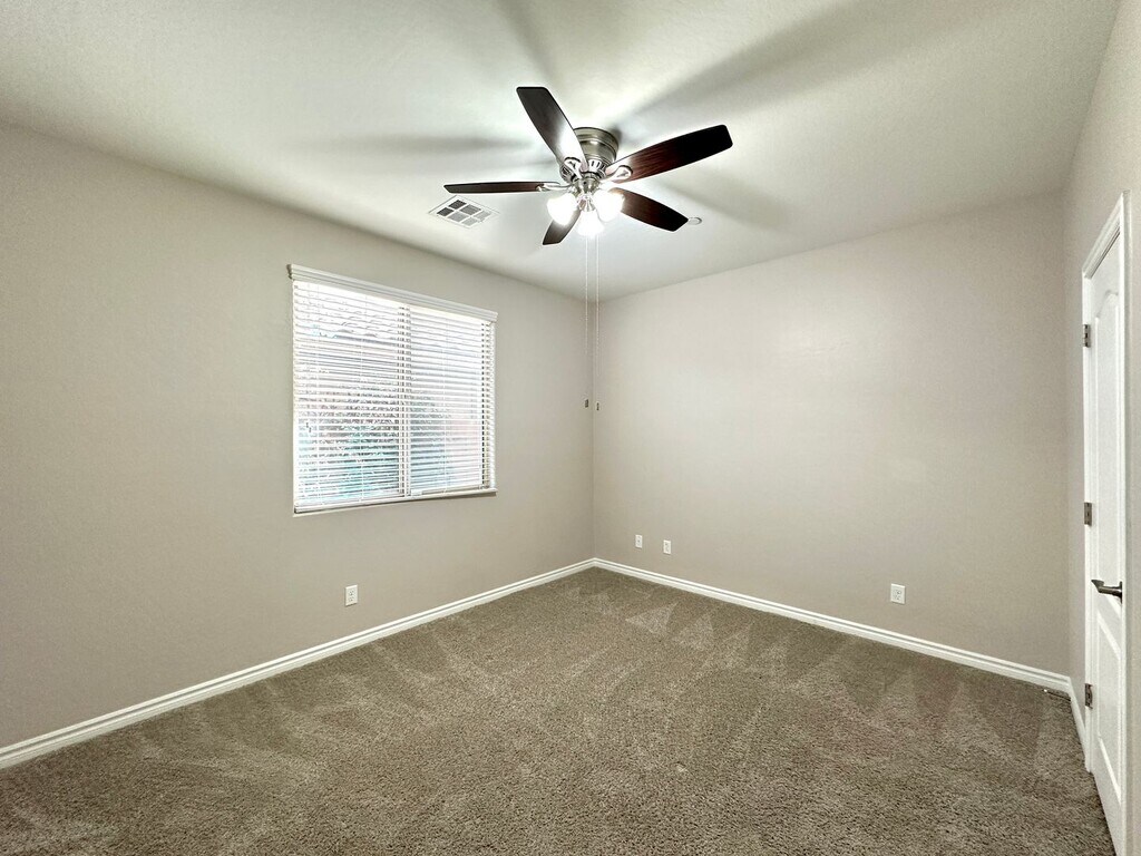 Beautiful 2-story, 4-bedroom, 3-bathroom home in Henderson featuring a convenient downstairs bedroom and 3/4 bath. Enjoy ceiling fans in every room and a spacious kitchen with double islands. Tile flooring runs throughout the downstairs, with carpet in the bedrooms and vinyl on the upper level. The home also includes a loft and an upstairs patio. Community amenities include a pool, basketball court, and playground. Price includes $25 for trash.