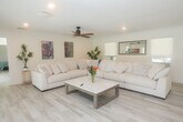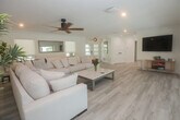 Experience tranquility at this newly remodeled and refurnished ranch-style home on South Siesta Key. This private vacation oasis, immediately available for annual, seasonal, or monthly rental, is perfect for large groups or multiple families. The main house features 4 bedrooms and 2.5 baths, sleeping up to 11 guests. A bonus studio apartment with a full bathroom accommodates an additional 3. The new kitchen, poolside barbecue, and multiple large-screen TVs ensure comfort and convenience. Relax in the private, screened-in pool or take a short walk over your private lagoon bridge to a secluded, gated beach cabana, perfect for watching spectacular sunsets or fishing . On-site parking for 5-6 cars and WiFi are included. Enjoy a wealth of activities, from fishing and kayaking to bird watching. Nearby attractions include Turtle Beach State Park, Siesta Key's famous quartz sand beach, and the vibrant Siesta Key Village with its array of restaurants and shops. Explore Selby Gardens, the Ringling Museum, and Mote Aquarium, or indulge in shopping at Armand Circle. Conveniently located, you're just 25 minutes from SRQ airport and 20 minutes from downtown Sarasota. A free trolley to the village and free taxi services are available. Hosted by a local Siesta Key resident dedicated to exceeding guest expectations. Call today to discuss availability and book your stay!