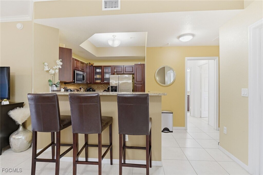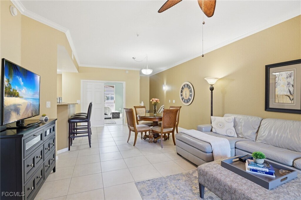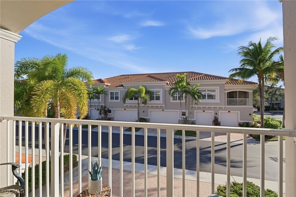 Available January 1,2026. This furnished 3 bedroom/2bathroom second floor carriage home features an inviting great room with comfortable sofa and large TV. The kitchen has granite countertops,a pantry,and a breakfast bar overlooking the dining and living room. Off the dining space is a large bedroom with private balcony. The primary bedroom has a queen sized bed and spacious en suite bathroom while a third bedroom features 2 twin beds. A screened lanai offers a great space to relax. Mirasol at Coconut Point has a community pool and fitness center. It is located just minutes from Coconut Point Mall which features many shopping and dining options that are within walking distance. ***Currently tenant occupied. Some items in the pictures belong to the tenant and will be removed. The bed in the bedroom with the balcony is the tenant's and will be removed. There is a sofa and coffee table for that room that is not pictured. The chairs on the front balcony are the tenant's.