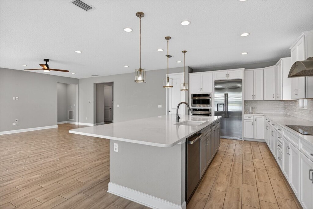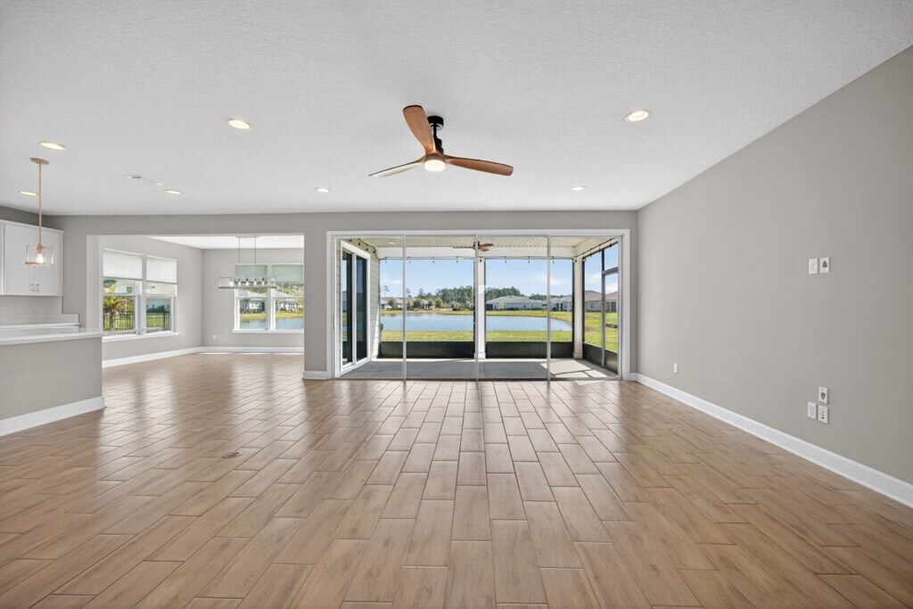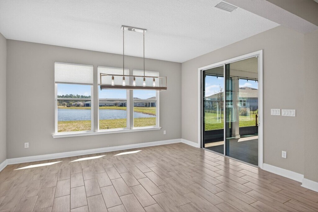 Welcome to this beautiful three-bedroom, two-bath spacious home located in the desirable Hampton Lakes community! This home features an open floor plan that is perfect for entertaining and everyday living. The spacious kitchen is a chef’s dream, complete with stainless steel appliances, ample counter space, and a convenient breakfast bar. Large windows throughout the home allow for plenty of natural light, creating a bright and inviting atmosphere. Enjoy relaxing in the sunroom while overlooking the peaceful pond in the backyard. The home boasts luxury vinyl plank (LVP) flooring throughout—no carpet—making for easy maintenance and a modern feel. With a nicely sized yard and a three-car garage, there is plenty of space for outdoor enjoyment and storage. This home truly has it all—schedule your showing today!