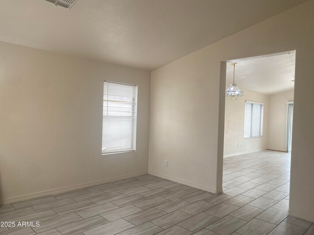 Lovely 3 bedroom/2 bath home with 2C garage located in the beautiful Fairmont community of Peoria. The versatile floor plan features a formal living room as well as a dining area and family room. Wood-look tile flooring throughout (No Carpet). Vaulted ceilings,neutral paint colors and lots of natural light give the home an open airy feel. Kitchen opens to the family/dining rooms and features a breakfast bar and plenty of cabinet and counter space. The sliding glass door from the family room opens to the covered patio and roomy backyard. Primary bedroom has a walk-in closet and an adjoining full bathroom. This home is ideally located near shopping,dining,West Gate entertainment area and the 101 freeway!