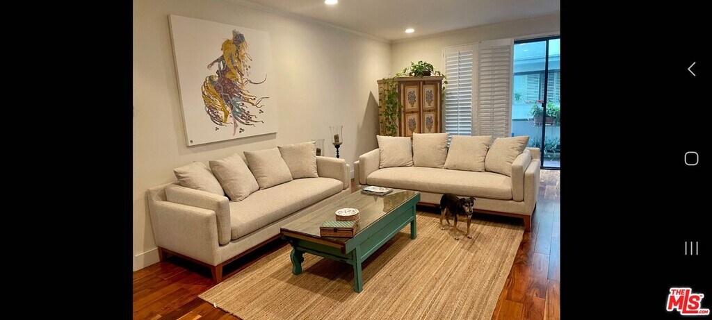 Beautiful, spacious 2 bedrooms, 2 bath condo. It is in a fabulous location, close to West Hollywood, Beverly Hills and Cedar Sinai medical center. In a quiet well sought neighborhood. This unit has a very spacious comfortable living and dinning area with newly installed hardwood floors, a wet bar with display shelving, fireplace and small balcony. Large coat closet in entry hall. Security building with gated garage and two enclosed parking spots. Heated pool spa, exercise room and meeting room. The building is walking distance to the Beverly Center, Trader Joe's, restaurants, theaters, shops and more. MLS# 25620457