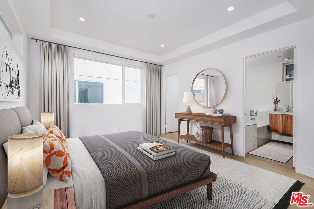 Stunning Modern Home in the Heart of Silver Lake Steps from Sunset JunctionLocated just steps from iconic Sunset Junction, this architecturally striking single-family home captures the very best of Silver Lake living. Bathed in natural light from walls of glass and offering expansive views of the Hollywood Hills and beyond, this private retreat blends a modern open-concept design with true indoor/outdoor California living.Enter through a welcoming foyer or directly from the two-car garage equipped with an EV charger. The first level features a spacious guest suite with an en-suite bath, perfect for visiting friends or a stylish home office. Upstairs, the primary suite offers dual walk-in closets with custom built-ins and a spa-like bath, while the third bedroom also enjoys its own en-suite bath.The showpiece of the home is the top-floor great room, where the kitchen, dining, and living spaces flow seamlessly onto a large south- and west-facing deck. Open the accordion glass wall to take in the vibrant sunsets and stunning city and hillside views.Designed with a modern aesthetic, smart home technology, and high-end sustainable finishes, this home is both luxurious and environmentally conscious. Live in one of Los Angeles' most dynamic neighborhoods just minutes from Erewhon, Courage Bagels, Pine & Crane, La Colombe, and countless boutiques, bars, and cafes that make Silver Lake an internationally admired destination. MLS# 25613289