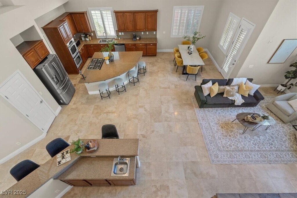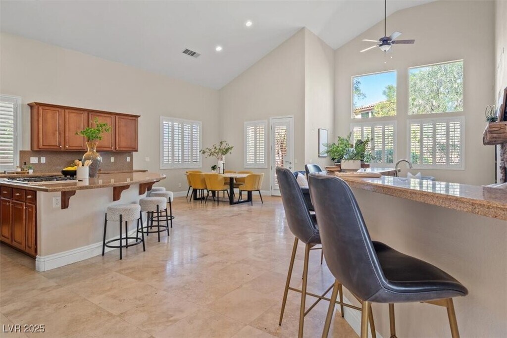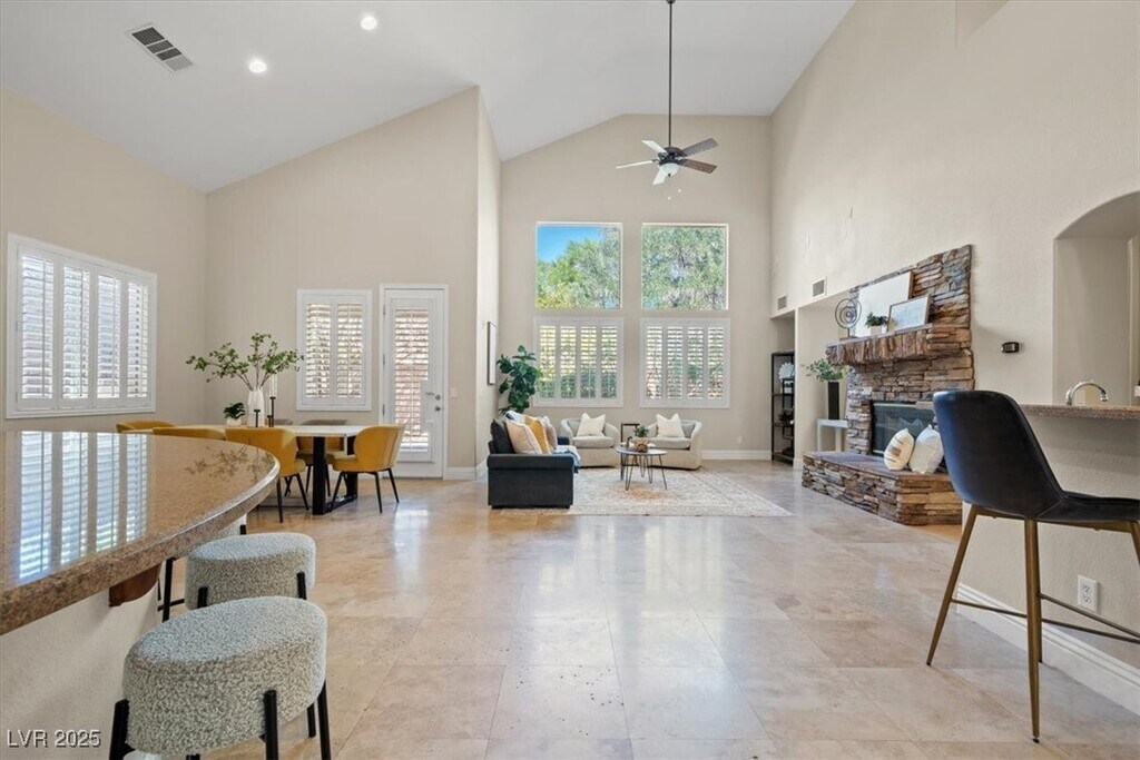 Discover the best of Summerlin living in this stunning 2,790 sq. ft. home featuring 4 spacious bedrooms and 3 modern bathrooms. Designed for both comfort and style, the open-concept layout offers seamless flow between living, dining, and kitchen spaces—highlighted by an oversized island perfect for cooking, entertaining, and gathering with family and friends. Located in the heart of Summerlin, one of Las Vegas’s most sought-after communities, you’ll enjoy easy access to top-rated schools, restaurants, shopping, nightlife, and the breathtaking Red Rock Canyon Loop for hiking or scenic drives. The backyard is beautifully upgraded with fresh pavers and low-maintenance desert landscaping, creating an inviting outdoor retreat that extends your living space. Blending luxury and functionality, this home offers the perfect balance of modern finishes, prime location, and the Summerlin lifestyle you’ve been looking for.