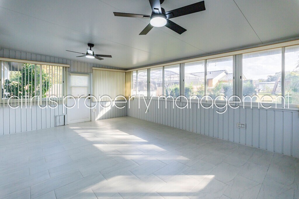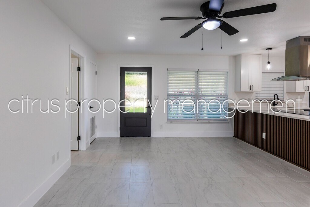 You will love this sleek, light, bright, minimalist, clean, completely remodeled 3/2, complete with fenced back yard and full sized shed for storage. Every surface has been updated from stone counters, all new appliances, ceiling fans, bathrooms, fixtures, flooring, paint and more. Hard surface, tile flooring throughout for easy maintenance. A large bonus sun room has a mini-split HVAC with abundant light and space, suitable for a playroom, office, studio or whatever you can dream up. The location boasts an easy commute to downtown, airports, universities, shopping, dining, and more. convenient to UCF, Full Sail, Valencia and more!