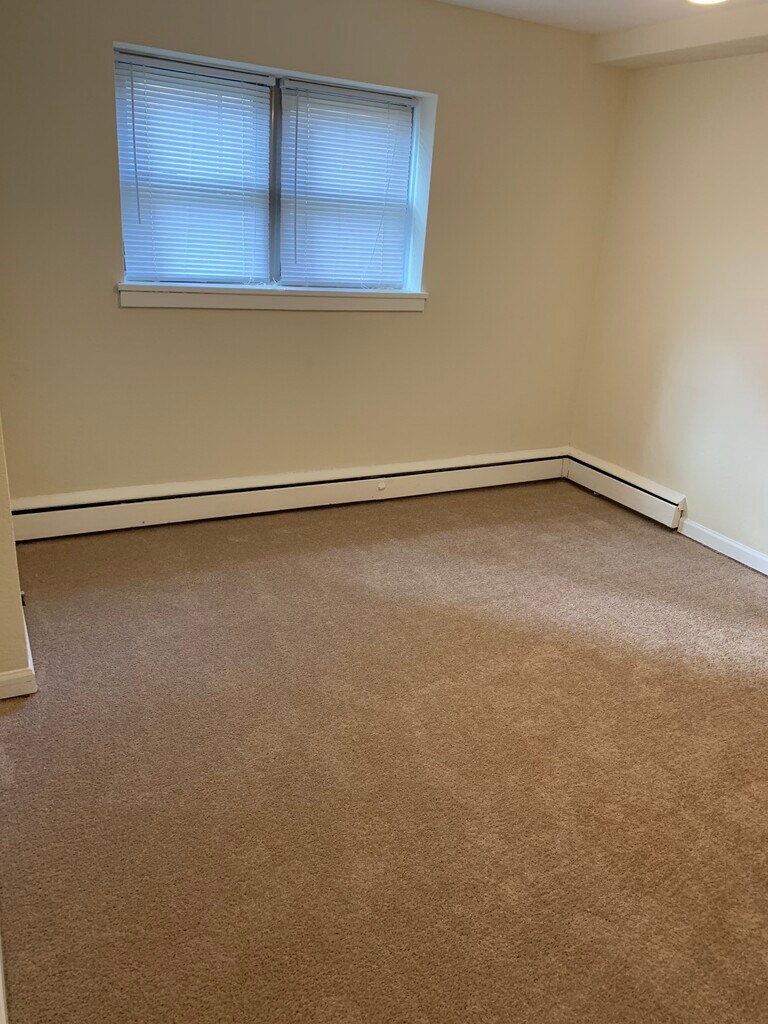 Property Id: 2418220 Walk in to a separate kitchen on the left featuring good counter space, a full-size range, refrigerator/freezer, and room for a small kitchen table. The living room is a comfortable size and includes a built-in A/C unit to keep the space cool during the warmer months. Both bedrooms are located off the living area and are separated by the bathroom. Each bedroom has two windows and a closet for storage. The bathroom features a tub/shower combo and a medicine cabinet above the sink. Additional storage includes a coat closet and a hallway linen closet. A private storage locker is also included in the rent. Tenants have access to a large parking lot, and garages are available for $100/month.