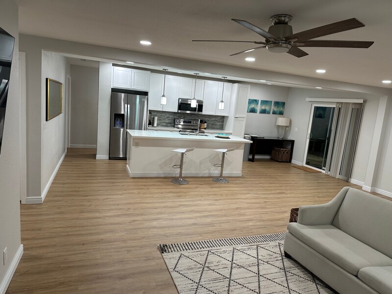 Property Id: 1955348 This listing is for ONE private bedroom in a shared four bedroom house. Please do not contact me if you are looking for more than one bedroom. The private bedroom itself is rented furnished as shown in the photos and is ready to move in! Central A/C keeps everyone cool! You will have full shared access to the rest of the house, including: * shared bathroom (2 others) * large living room with a 65" 4K TV * fully stocked kitchen with many appliances * spacious front yard * private back patio with washer and dryer * fully fenced property with security camera system This recently renovated modern style home is located along the main road, just two minutes in one direction from the beach, and two minutes in the other direction from Waianae Mall with restaurants, gym, bank, gas, shops, and other stores. Rent: $1,000/month for the room, plus ~$100/month for shared utilities. The longer you lease, the lower the total price is. Sorry, no smoking or pets allowed. Mahalo for looking!