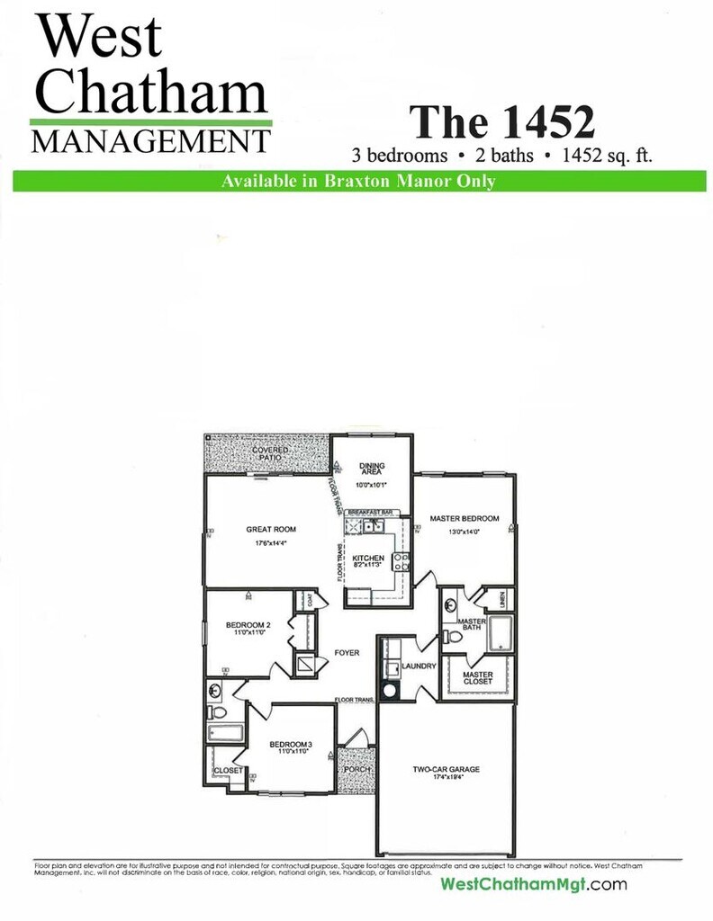 In the beautiful subdivision of Braxton Manor, you'll find this spacious "Like New", 3 bedroom Single Family Home. Managed by West Chatham Management, this intelligently designed home features a huge open plan living/dining area, an appliance packed kitchen, breakfast nook, a grand, master bedroom with en-suite, laundry room, as well as generous 2nd and 3rd bedrooms. Your home is immaculately maintained by the full-time maintenance team. This provides you with FREE lawn care, FREE Quarterly Pest Control, FREE Quarterly Preventive Maintenance and more! Go to to find out what else is included! Pictures are for Illustration Purposes Only.