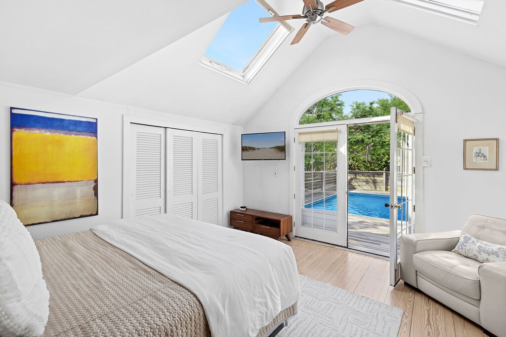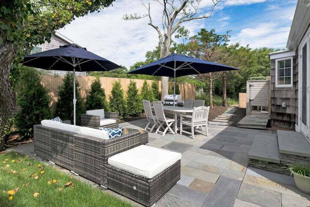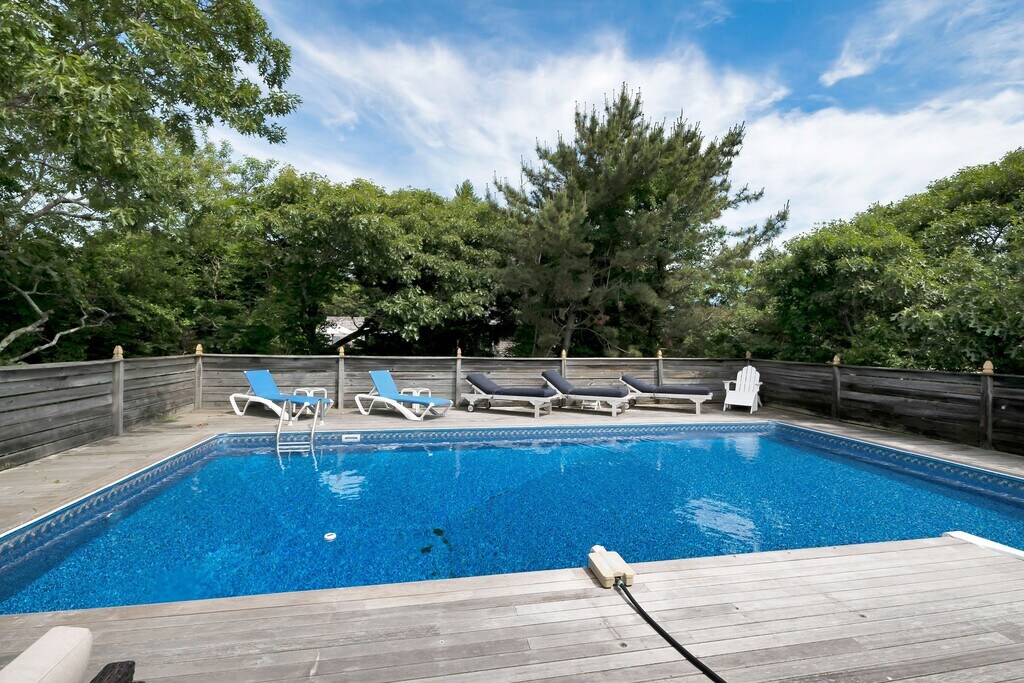 Renovated both inside and out, this beautiful Amagansett Dunes cottage has it all! Located just around 400 feet to ocean beach walkway, this charming house has just been completely landscaped including a brand new lawn, blue stone patio in back with all new outdoor furniture including dining table and chairs, gas BBQ, and entertaining area with sofa and chairs. The new blue stone walkway leads both around the house and heated pool. Pristine and recently updated, the interior first floor includes living room with fireplace and large screen TV, kitchen and dining area that overlook the back patio, a full bathroom, den/office with sofa sleeper. Separated for privacy, the large primary ensuite bedroom opens to an expansive deck with heated pool, lounge chairs and second entertaining area. The second floor includes two additional guest bedrooms, 1 with Queen bed, the other with twin beds, and a full guest bathroom. [[Rental Registration # 24-1987]] EH RR #: 24-1987 Rental Terms: Memorial Day - Labor Day: $160,000 June: $30,000 July: $65,000 August - Labor Day: $75,000