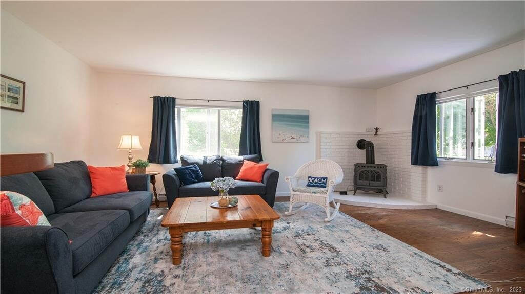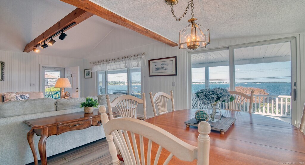 Call for Availability - ACADEMIC RENTAL ~Available October 2025 through May 2026 This exceptional waterfront property at Groton Long Point offers serene, panoramic views across Fishers Island Sound to Watch Hill, Rhode Island-an ideal setting for those seeking a peaceful shoreline setting. Fully furnished to provide both convenience and comfort throughout your stay. The living and dining area boasts vaulted ceilings and a spacious wood-burning beach-stone fireplace, creating a welcoming atmosphere for cooler evenings. Additional features include a generous family room with a gas stove, a first-floor office or bedroom equipped with a single bed, a full bath, and a laundry room on the main level. The second floor comprises a primary bedroom with a king-size bed and a third bedroom with a queen-size bed. Outdoor amenities are equally impressive, featuring a large wrap around covered porch and a private yard with access to excellent recreational activities. Conveniently located just a few miles from Downtown Mystic, offering proximity to restaurants, shops, the Amtrak station, and Interstate I-95 for easy travel. MLS# 24113002