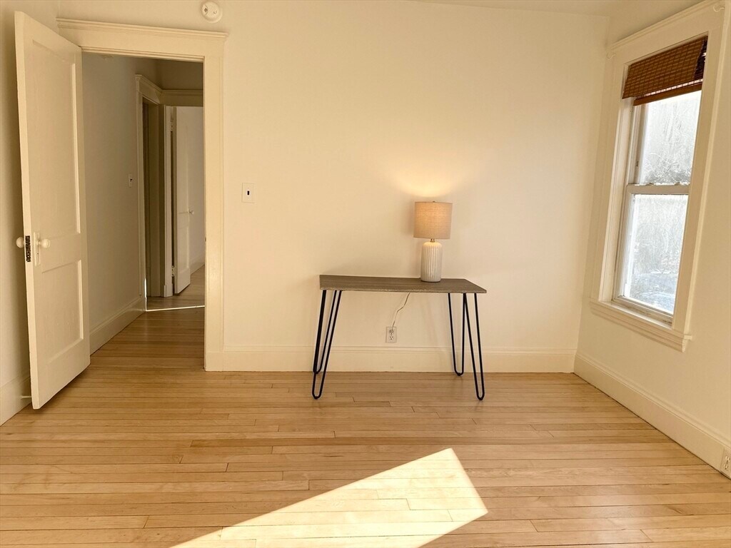 This light-filled two bedroom unit in an owner-occupied two-family home is located in desirable East Arlington. The entry foyer opens to the spacious and bright living room which seamlessly flows into the dining room with a glass-front built-in hutch. The large eat-in kitchen with pantry offers direct access to the exterior and driveway. Two ample-sized bedrooms and a newly remodeled bathroom are separated from the main living areas by a hallway. Additional storage and laundry are located in the basement. With original hardwood floors refinished and freshly painted throughout,this unit is available for immediate occupancy. One off-street parking space is included. Easy access to Alewife T Station,buses,Minuteman Bike Path,Arlington Center and area amenities as well as routes 2/16/60/93/95. Just a few blocks from Hardy Elementary,Thorndike Field,Spy Pond and Alewife Reservation. First month's rent and security deposit required. Per landlord,no smoking and no pets are allowed. MLS# 73462816