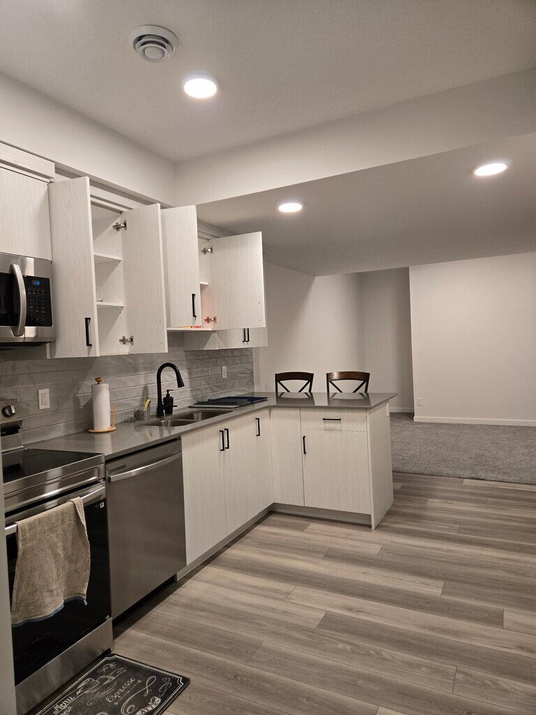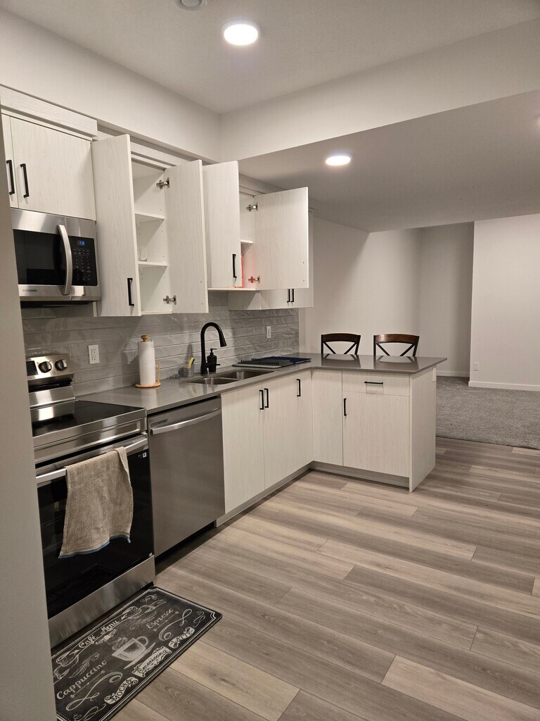 Partly furnished 2-bedroom, 1 bath spacious legal basement suite in a newly built house in the community of Rangeview SE. The basement has a private side entrance and is equipped with modern facilities, all brand new. The house location is 4 minutes drive to the YMCA, South Health Campus Hospital, Public Library and many grocery stores within the Seton Community. Very close access to Stoney Trail and Deerfoot Long-term lease preferred, but short-term can be negotiated. One month security deposit is required. A credit check will be required. Tenant will pay 30% of utilities, which Includes internet/wifi. The basement has its own Ecobee thermostat so tenant can adjust the heat and temperature to their own preference.