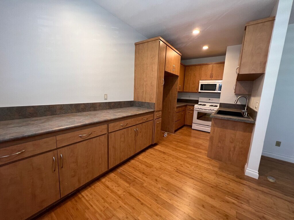 2nd story entrance to this 2 story unit. Recently remodeled with fresh paint, new hard wood flooring through out, remodeled bathrooms and kitchen. Tons of storage in expanded kitchen! Washer and dryer located on top floor with 3 bedrooms. Community pool and spa. 1 assigned carport space with storage and 1 uncovered space. Trash included. No smoking. Well behaved pet will be considered with increased deposit.