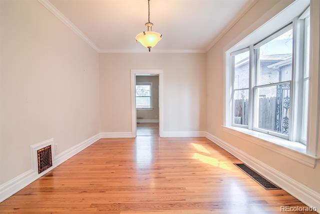 Walk up to the spacious porch with plenty of space for your lovely outdoor furniture! Enter into the welcoming foyer, a graceful entryway into a lovely historic home! The main floor has gleaming hardwood floors, high ceilings and beautiful original details, such as leaded glass windows, crown molding, baseboards and woodwork. The main floor offers a large living room with a decorative fireplace and mantel, a spacious dining room with a beautiful bay window, a large private office, a fully updated kitchen with stainless steel appliances, a gas stove and plenty of cabinet space, a breakfast nook with a pantry that would also function well as a large mud room with a coat closet and access to the back yard. Head up the graceful staircase with original, well maintained woodwork to the second floor. There are 3 bedrooms upstairs, the master with an en-suite ¾ bath is large with multiple closets, lots of morning light and plush carpet. The second bedroom has 2 walk-in closets, a ceiling fan, lots of light and hardwood floors. The convertible third bedroom can be a wonderful extension to the master suite or offers a 3rd bedroom with new carpet and a spacious closet. This floor offers a walk-in linen closet as well as a 2nd bathroom with a clawfoot tub. There is an unfinished basement, clean and bright with a washer and dryer and lots of space for storage. The back yard is fenced with a patio perfect for a charming outdoor dining area. Plenty of grass to play or space for gardening with alley access and a 2-car garage with 2 separately functioning garage doors. This location is unbeatable! Minutes to downtown, Cherry Creek, Washington Park and Chessman Park! The neighborhood has plenty of great places to enjoy, including Waffle Brothers, Racine’s, Trader Joe’s, Tony’s Market, the Cherry Creek bike and hike and so much more! Single Family Residence MLS# 4738833