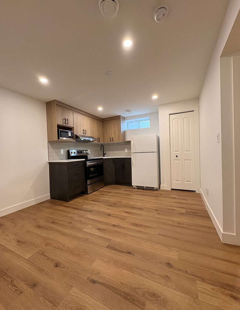 86 Tuscarora Circle, Calgary This is a brand-new, fully legalized basement suite in the desirable community of Tuscany. Ideal for students, professionals, or couples seeking an affordable and well-located living space. Property highlights This fully independent, self-contained unit is ideal for comfortable everyday living, and includes: A private entrance, a bedroom with a custom closet and a large window that brings in plenty of natural light, a full bathroom, a modern kitchen with quality finishes and brand-new appliances (stove, fridge, microwave, hood vent), a dedicated full laundry room, independent thermostat. Location Highlights: Quiet, family-friendly neighborhood, close to the train station (10 minutes walking), bus stops (3 minutes), parks, walking paths, schools, Sobeys, and major routes like Stoney Trail and Crowchild Trail. NOTE: The upper level of the home is rented separately.