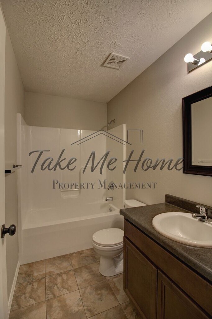 Right as you walk in you see the living room opening into the kitchen and dining area! The master bedroom features a walk-in closet and a double vanity in the bathroom. This home has real tile floors in the kitchen and entry way, along with an oversized garage and big backyard! Ready to rent with dishwasher, oven, and microwave installed.