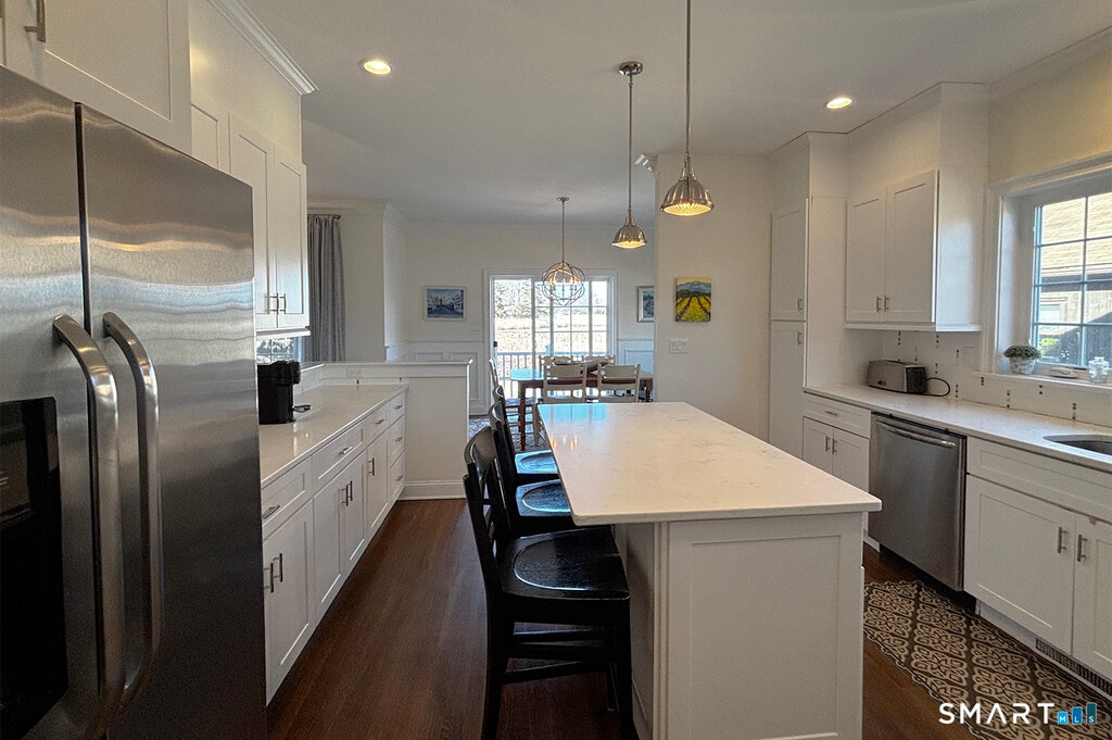 Call for Availability - Enjoy the best of Fairfield living with this home's prime location close to both the beach and vibrant Fairfield Center! Throughout the home, you'll find quality craftsmanship, gleaming hardwood floors, and nine-foot ceilings that create a bright, open feel. The kitchen is well-appointed with a center island, granite countertops, stainless steel appliances, and ample prep space, flowing seamlessly into the dining area with sliders to the backyard - ideal for everyday living and entertaining. The spacious living room is anchored by a gas fireplace, offering a warm and inviting setting. A powder room and access to the one-car garage complete the main level. Upstairs, the primary bedroom features a full bath with granite countertops, a tiled shower, and tile flooring. Two additional bedrooms share a Jack & Jill bath and offer excellent closet space. A convenient second-floor laundry room includes a washer and dryer and tile floor. Privately set, many rooms enjoy peaceful views of the Welch Terrace Marsh Open Space Preserve. All just moments from Fairfield Center, with easy access to shops, restaurants, the train, library, beaches, parks, and golf. MLS# 24161640