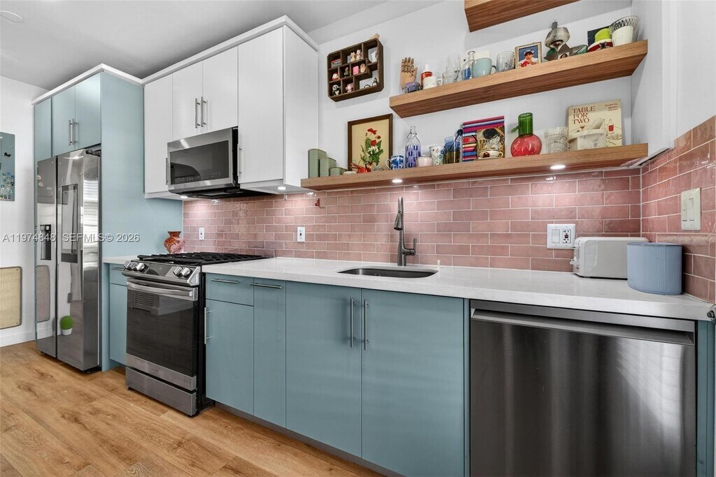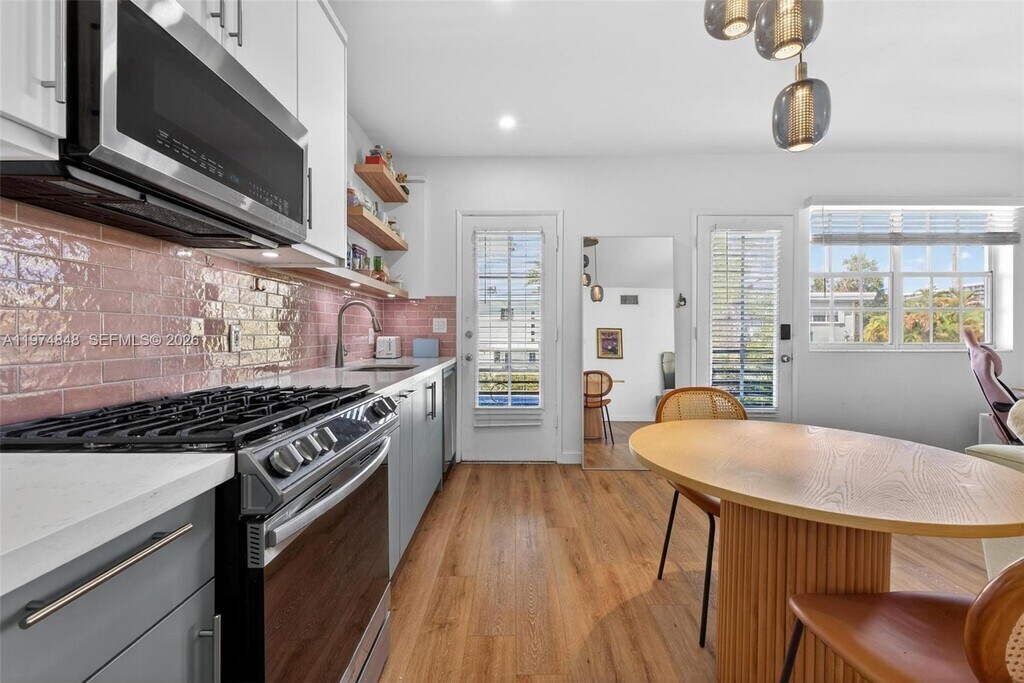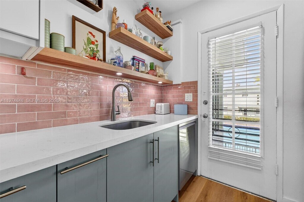 Beautifully updated 1-bedroom Unit, in the heart of North Beach. This bright and inviting unit features a modern kitchen with soft sage cabinetry, stainless steel appliances, quartz countertops, and a unique pink glass tile backsplash that adds warmth and character. Open shelving and contemporary finishes create a fresh, stylish atmosphere. The spacious bedroom offers excellent natural light and a serene ambiance, complemented by warm wood flooring throughout. The layout is functional and comfortable, ideal for those seeking a cozy beachside home. Enjoy peaceful waterfront surroundings just steps away, including a pool area overlooking the canal—perfect for relaxing and enjoying Miami sunsets. Conveniently located minutes from the beach, parks, shopping, dining, and major roadways. A wonderful opportunity to live in one of Miami Beach’s most charming neighborhoods. MLS # A11974848