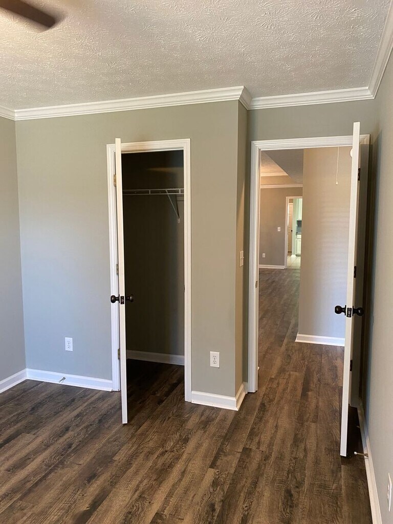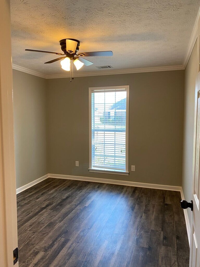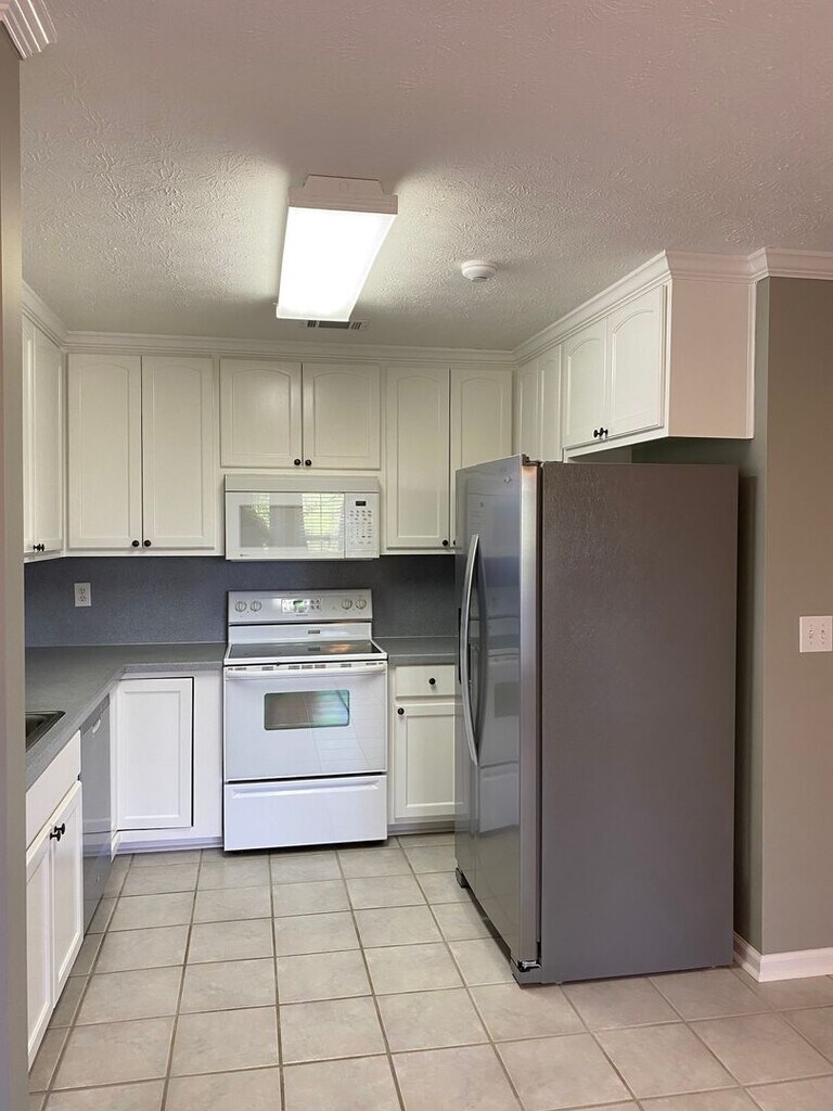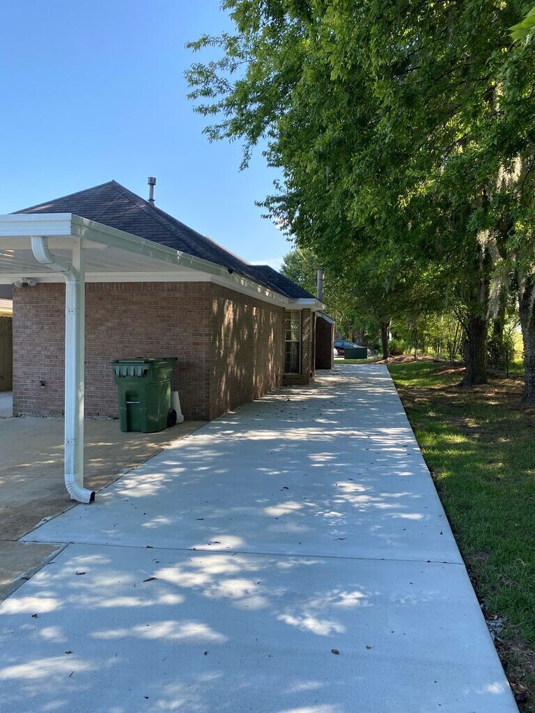 Country living!! Completely updated and beautifully finished with decorator touches. This home looks brand new. 3 bedroom, 2 bath house with a living room/dining room combination, large fully equipped eat-in kitchen with a pantry and custom shelving in the breakfast area, large laundry room with washer and gas dryer provided. The living room has a very nice fireplace with gas logs. There is new vinyl flooring throughout except for tile in the foyer, bathrooms and kitchen area. The owner requires that all furniture legs have pads under them to protect the new flooring. There are 2" blinds and ceiling fans in all rooms. There is a large storage room with exterior double doors for easy access with lawn equipment. There is a covered patio and covered parking. Lots of additional parking and exceptionally generous amounts of separate entertaining areas. There is gas heat and water heater, central electric cooling. The home is strictly NON SMOKING. Pets are not allowed. Applications are accepted online at A minimum credit score of 600 is required and copies of driver license, proof of employment and income, and current housing payment record will be verified.