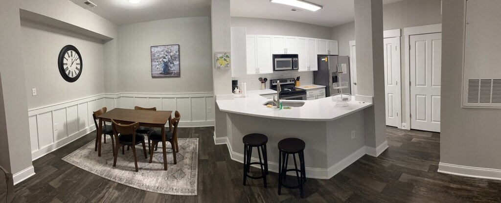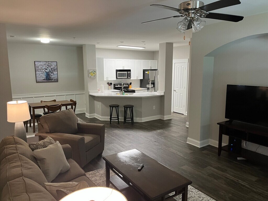 Feel at home in this newly renovated apartment located in the heart of the Blakeney shopping district. This spacious apartment features brand new stainless steel appliances and a 55" flat screen TV in the living area. Enjoy a very spacious outdoor patio. Pets are permitted for a fee of $8.00 per day, not to exceed $300.00. This apartment is centrally located, providing all the conveniences of a myriad of restaurants, grocery shopping, and retail, all within a short walk. It is a perfect location for a family of 4 or 5. [SI]