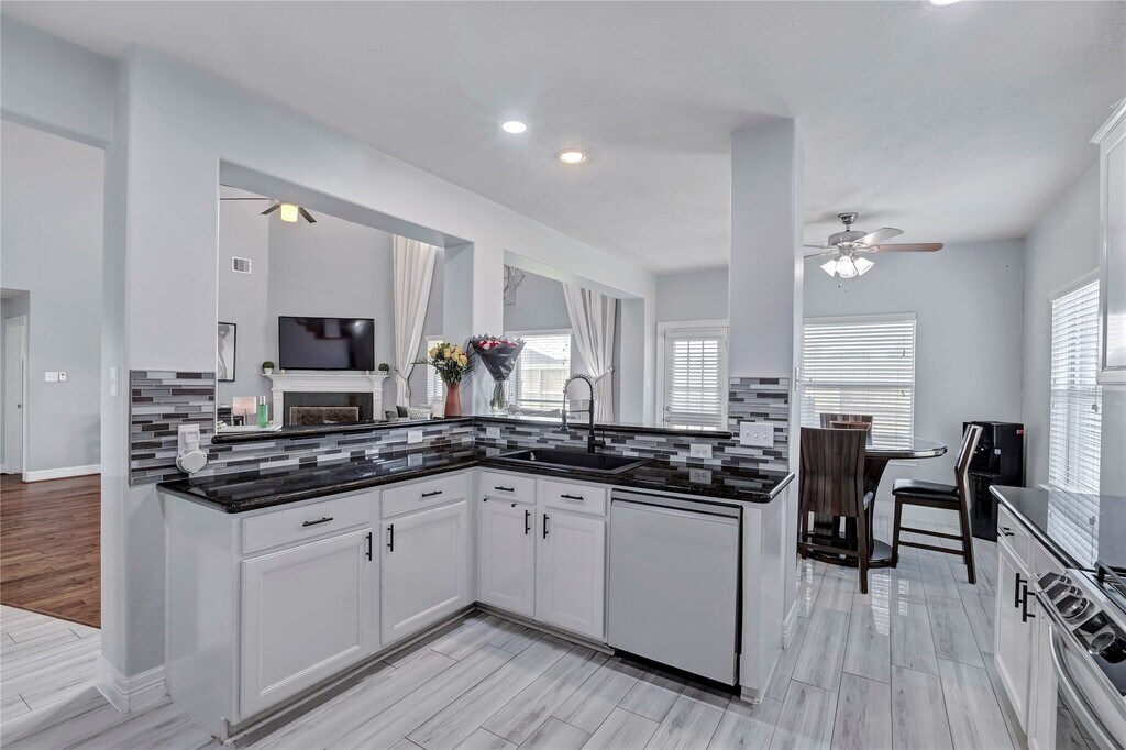 This beautiful home sits on an oversized lot,offering ample space for outdoor activities. Its brick exterior and mature landscaping provide inviting curb appeal. Upon entering,the vaulted ceilings and spacious layout create a bright and airy atmosphere. Beautiful flooring and abundant light throughout the home add a touch of elegance and warmth. The kitchen boasts modern appliances and generous counter space,with an adjacent dining area and attached seating area perfect for entertaining. Upstairs you'll discover a theater room/gaming space. The primary bedroom is a comfortable retreat. The fenced backyard and covered patio offer privacy with a well-maintained lawn. Upgrades include new roof 6/25,water heater and upstairs a/c 2024,fresh interior paint,new carpet and an epoxy-coated garage floor. Located in Barbers Hill ISD,low taxes,and close to IH-10. Schedule your showing today! MLS# 77647332