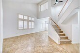 Located near Summerlin, in Las Vegas, this 4 bedroom, 3 bathroom home offers a spacious layout with a large family room featuring a fireplace and high ceilings. The kitchen includes stainless steel appliances, and the tiled entryway leads to living spaces with blinds and ceiling fans throughout. The primary suite provides a large walk-in closet, a primary bathroom with dual sinks plus separate tub and shower, and a small loft area ideal for a compact office. A dedicated laundry room with cabinets and an included washer/dryer adds convenience. Outside, a spacious backyard complements nearby amenities such as playgrounds, shopping, schools, parks, a hospital, Tivoli Village, and Boca Park — all within a short drive. Trash, Sewer and Tenant Portal Fee are included in rent!