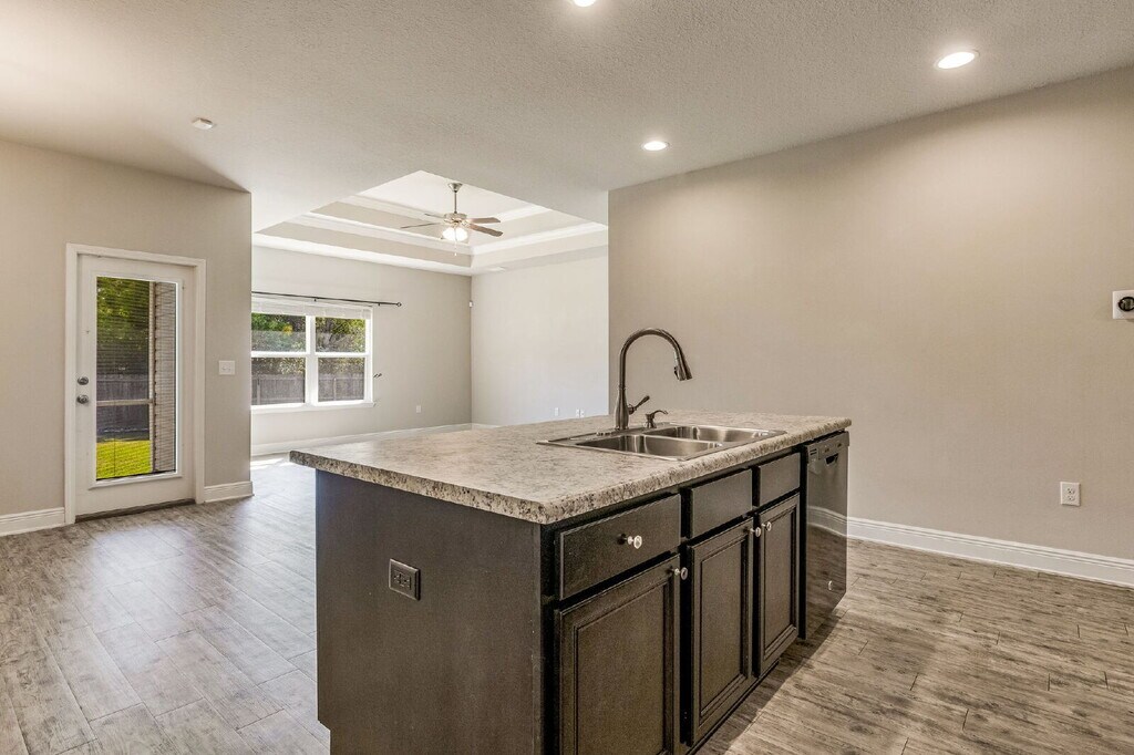 Step inside to discover a light-filled interior adorned with luxury vinyl flooring, complemented by spacious rooms featuring high trey ceilings and crown molding throughout. This home has been immaculately cared for, ensuring a pristine living environment. The heart of the home is the stunning kitchen, boasting espresso cabinets and a generously sized island that overlooks the inviting living and dining areas. Ideal for gatherings and daily living, this space exudes both style and functionality. The master bathroom is a retreat within itself, featuring a raised dual vanity, a large garden tub, and a separate standing shower for added convenience and luxury. Outside, you'll find a large privacy fenced backyard, backing up to mature trees that provide both privacy and a serene backdrop. This outdoor space is perfect for relaxing, entertaining, or letting kids and pets play freely. Conveniently located just minutes from NAS Pensacola, pristine beaches, and shopping destinations, this home offers easy access to everything Pensacola has to offer. Don't miss the opportunity to make this elegant and well-appointed residence your new home sweet home. Schedule your showing today and envision yourself living in this Pensacola gem!