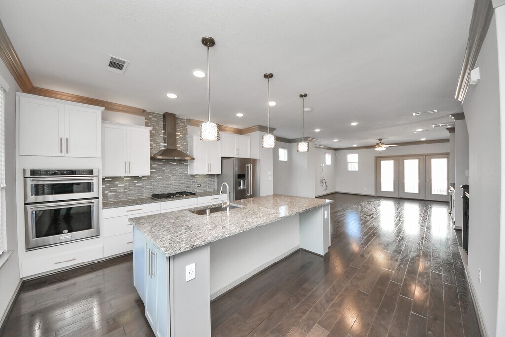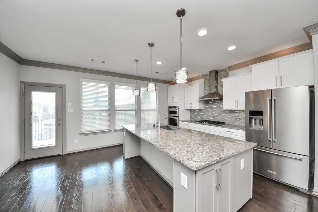Private pool-facing residence in a gated community,this modern 3-story home blends city living with the feel of a private retreat. The open-concept main level features a chef’s kitchen,beverage center,and seamless flow for entertaining or relaxing. Enjoy granite counters,stainless appliances,and great views. The owner’s suite includes tray ceilings,dual vanities,and a walk-in shower. Downstairs,a private study and half bath are perfect for work-from-home. Unwind on the 3rd-floor deck with treetop and Williams Tower views,or enjoy the covered patio facing the community pool. Quick access to Galleria,Beltway 8,and 610.l MLS# 88577155