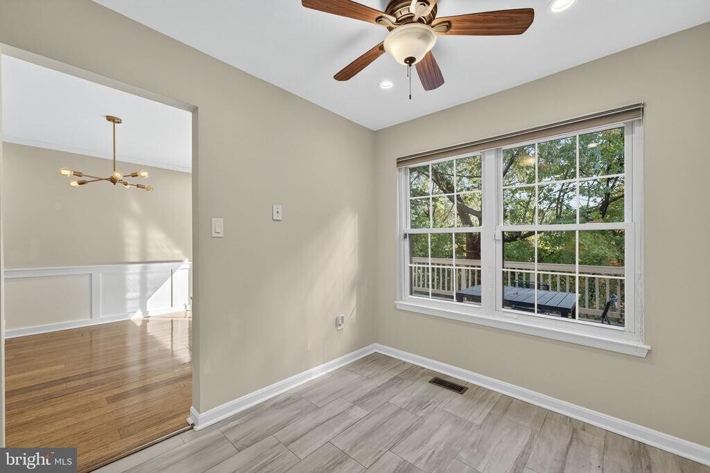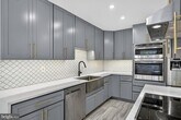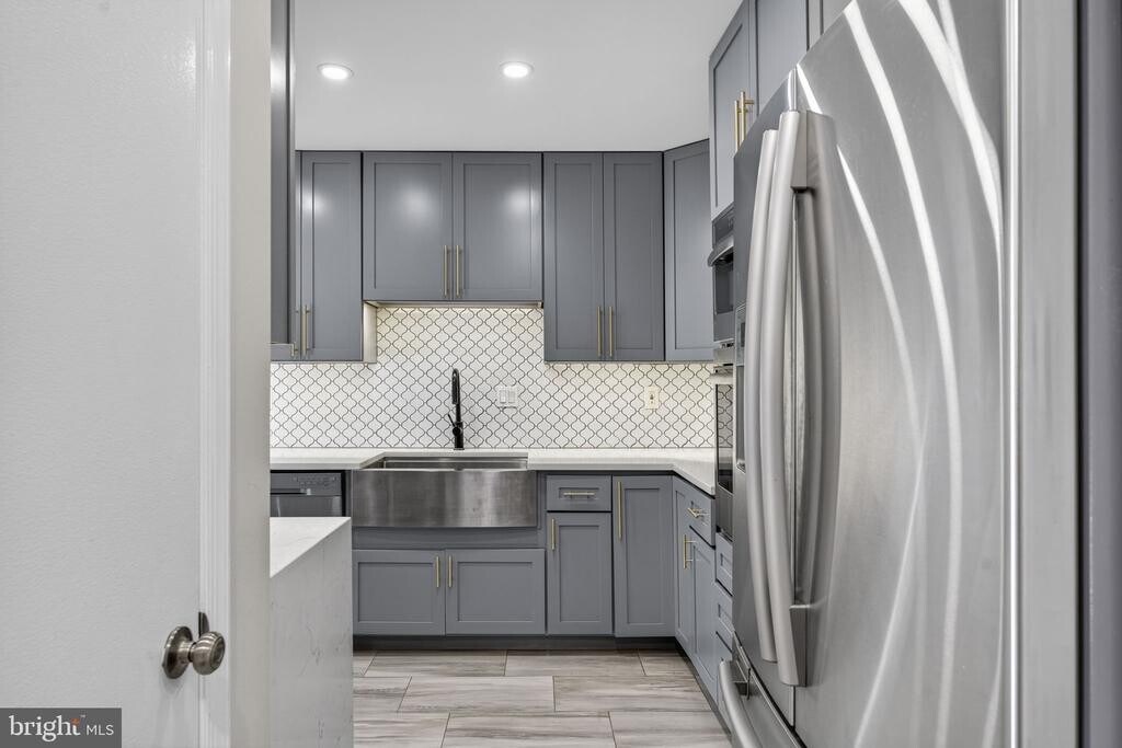Step into an open-plan main floor where the living room features recessed lighting and abundant natural light. The gourmet kitchen offers quartz countertops, designer tile backsplash, stainless-steel appliances including a wall oven and cooktop, and a sleek farmhouse sink. The dining area, anchored by a modern light fixture, opens to a spacious deck that backs to a tree-lined green space—ideal for outdoor relaxing or entertaining. Upstairs you’ll find three generously sized bedrooms alongside two fully updated bathrooms. The primary suite features a spa-style ensuite bathroom with a walk-in shower, soaking tub and dual vanities. Hand-scraped bamboo or wood-style floors flow throughout the upper level in many similar units. The walk-out basement includes a cozy fireplace, built-in bar area (in similar townhomes), full bath and access to the fully fenced backyard. This level provides flexibility for a rec room, home office or guest suite. Positioned in Springfield’s sought-after corridor, this townhouse offers top commuter convenience—just minutes to I-95, the Franconia‑Springfield Metro Station, VRE, and major Northern Virginia roadways. Reagan National Airport is also within easy reach. For shopping and errands, nearby centers offer everyday groceries, restaurants and services.