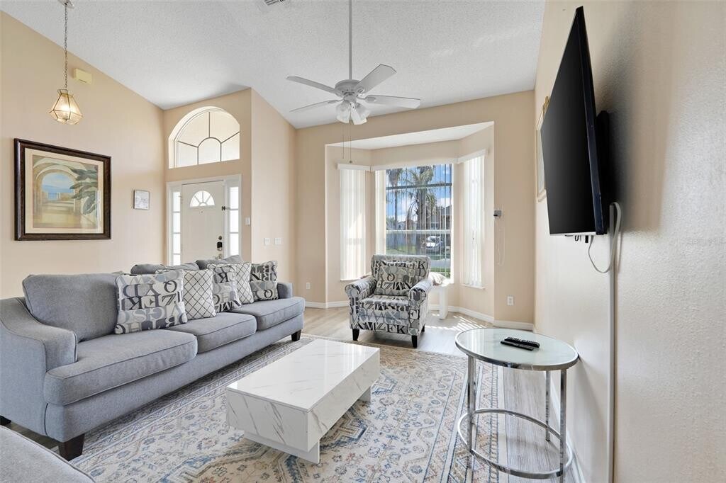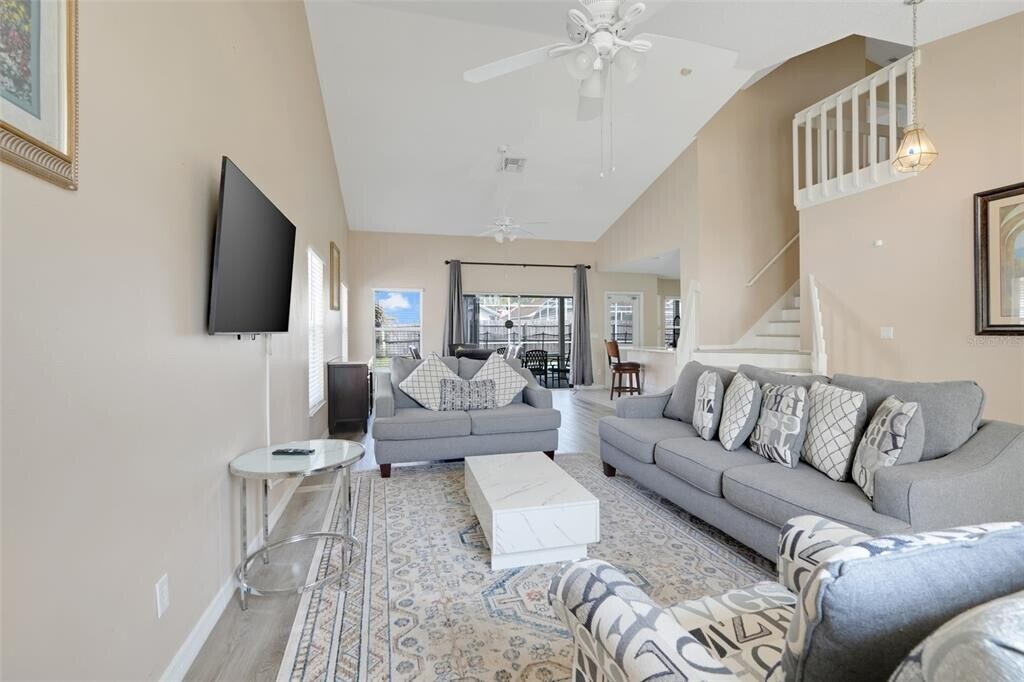Spacious and fully furnished 5-bedroom,2.5-bath pool home just minutes from Walt Disney World! Ideally located nearby to shops and dining,this home offers both convenience and comfort. Inside,you’ll find generously sized bedrooms,including a primary suite on the first floor for added privacy. Enjoy formal living and dining areas,perfect for entertaining or relaxing. Large glass doors open to a fully fenced backyard featuring a screened in pool and expansive patio. MLS# O6391952