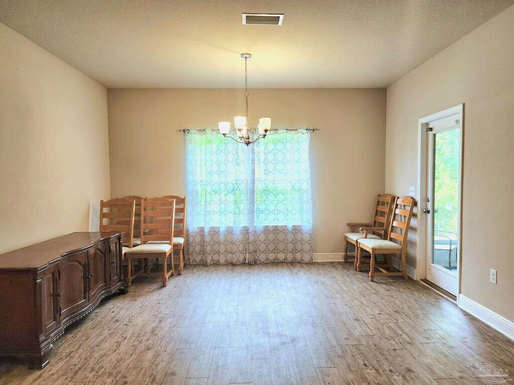 This captivating 3-bed,2-bath home offers a perfect blend of elegance and comfort. From the columned front porch to the recessed ceilings,every detail is thoughtfully designed. The open layout seamlessly connects the arched living area,convenient breakfast bar,and a screened-in back patio,perfect for enjoying peaceful moments in the private backyard. The expansive master bedroom features a luxurious ensuite with dual vanities,a walk-in shower,and a garden tub,plus direct access to the patio. Nestled on a quiet cul-de-sac and backing up to a permanent green space,this home provides privacy and tranquility while being just minutes from multiple boat ramps and the beautiful beaches of Perdido Key. Pets allowed with owner approval and completed pet screening. Apply online; $75 App fee per adult,half off for active-duty military. Subject to credit check,background check,employment verification,and rental verification. CERTIFIED Funds required for move in!