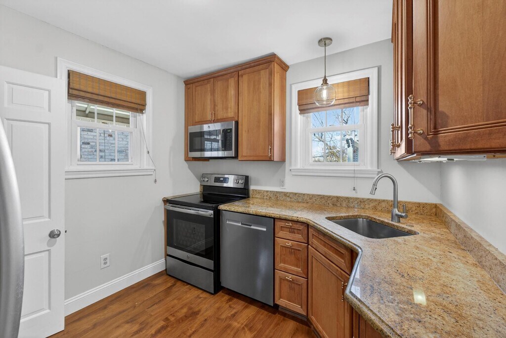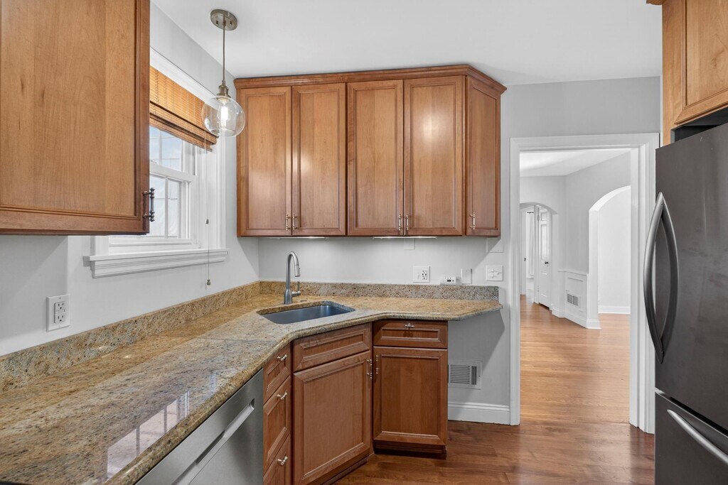 This is a charming home that has been updated throughout! Clean and fresh! Bright interior decor. Updated Kitchen with 42inch cabinets with under-cabinet lighting, granite countertops, and stainless appliances. Updated full bath on main floor. The Living Room has a handsome brick fireplace (non-functioning) surrounded by built-in bookcases. The spacious Family Room opens onto a fabulous, expansive outdoor paver patio (24 x 17) and a beautiful, large, privacy-fenced yard. The Lower Level was recently finished and adds a lot of extra square footage; perfect for Rec Room, Exercise Room,... and also features a beautiful newer full bath with custom tile flooring, walk-in shower, and adult height vanity. This has a convenient 1-car garage too. This home sits in a charming, quiet neighborhood, in an incredible location -- Walk to Starbucks, restaurants, and shops. Easy access to highways too! Owner will allow a pet with a $500 non-refundable deposit. One month's rent as security deposit. 1 year minimum lease, and owner would welcome a longer term lease. Applications can be made online through RentSpree. Available immediately.