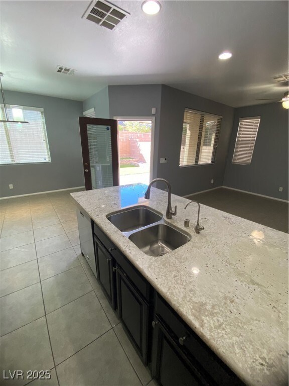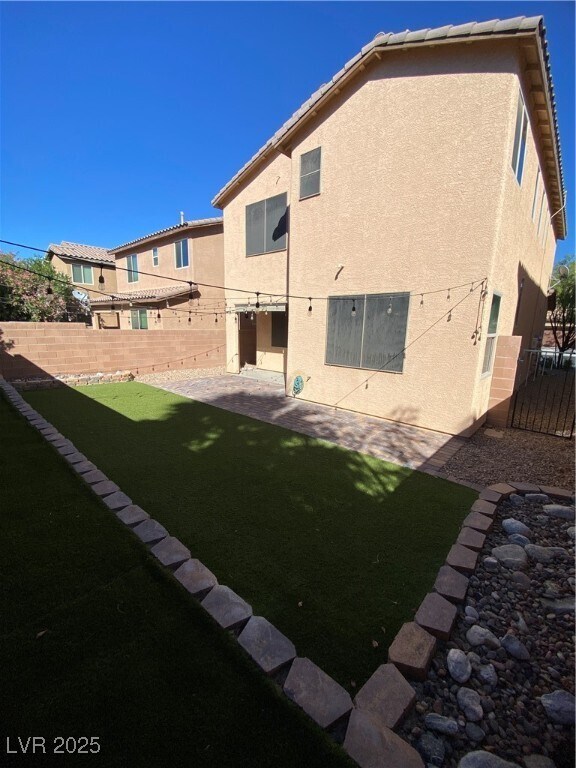 Located in SW Las Vegas. Beautiful 4 bedrooms, 2.5 baths, 2 story home in SW gated community. Open floor plan with all tiles downstairs, includes a nice Island with breakfast bar, granite countertop, walk-in pantry, and updated dark cabinetry. Tile flooring throughout the 1st floor. Laminate flooring in all bedrooms. The spacious primary bedroom has a walk-in closet plus a shower and tub in the master's bath. Ceiling fans all over the house. Good size private and all fenced backyard. 2 car garage. Solar panels for very low electrical bill. Dogs welcome! Great location near shopping, restaurants, entertainment and more.