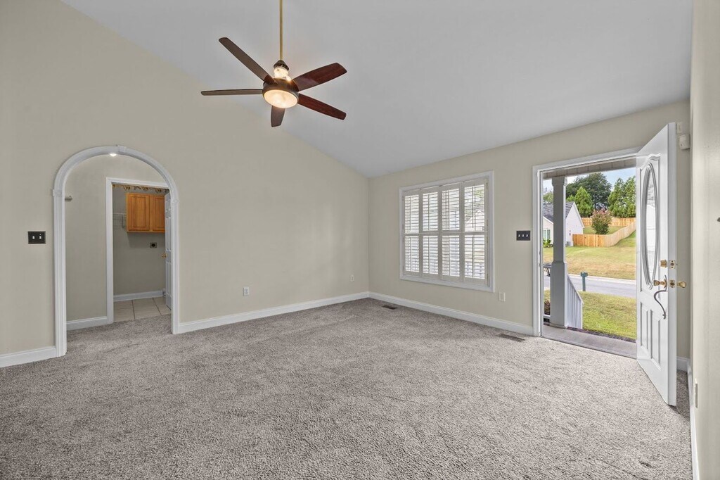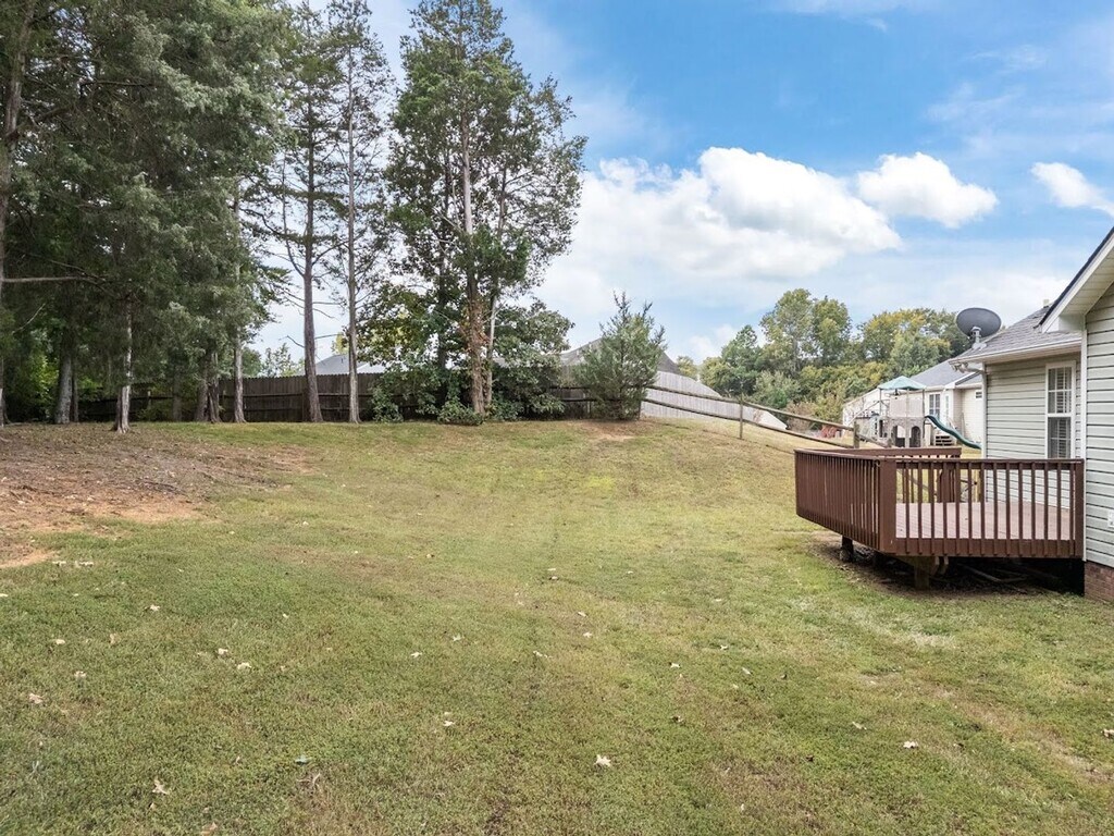 Available NOW! Well cared for 3 bedroom 2 bath one-level home on approximately wooded 1/2 acre fenced lot. Inviting colors throughout house. Fenced back yard with deck. Large open great room with cathedral ceiling and gas log fireplace with plush carpet. Large open kitchen with ceramic tile floor with natural oak real wood cabinets and granite kitchen countertops with tile backsplash. Lots of upgrades. Tankless gas water heater will save lots on utility bills. Spacious bedrooms and in all rooms with low maintenance laminate flooring. Gorgeous primary bathroom with granite countertops and garden tub, double sinks. Full second bathroom with granite countertops. Plantation blinds in most windows. Large attached 2-car garage. Established St Andrews Place neighborhood . Must see inside to appreciate. 1 dog <30 lbs allowed; no cats ad must be approved by owner. Central A/C, Gas Heat. Directions: Hwy 49 N, Right on Zion Church Rd, Left on Piney Church Rd, Left on Loch Lomond Circle